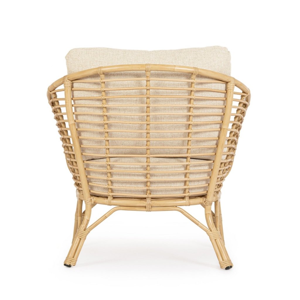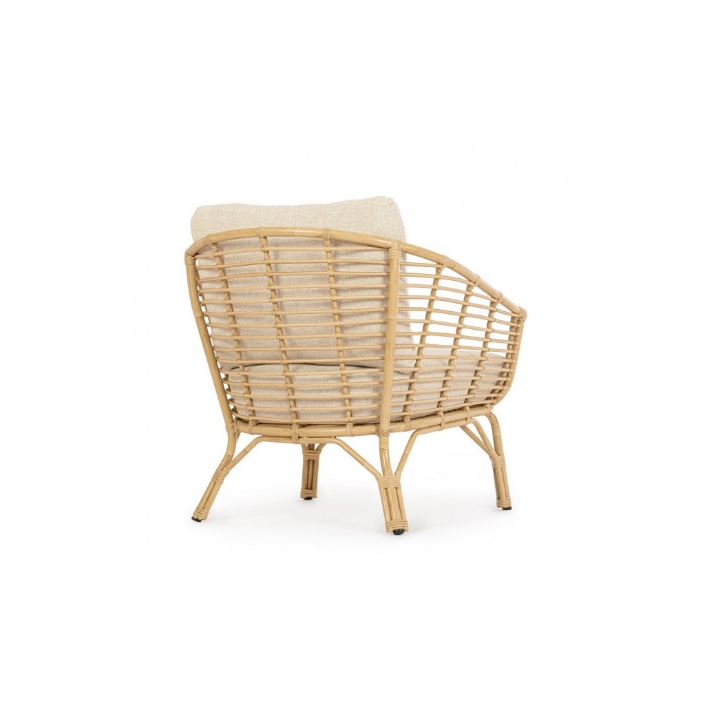 Ratanové křeslo MABEL od italského výrobce stylového nábytku BIZZOTTO v provedení ratanového vlákna a textilních polštářů.