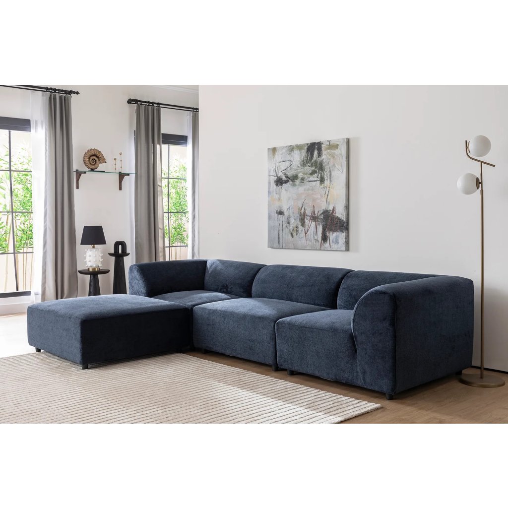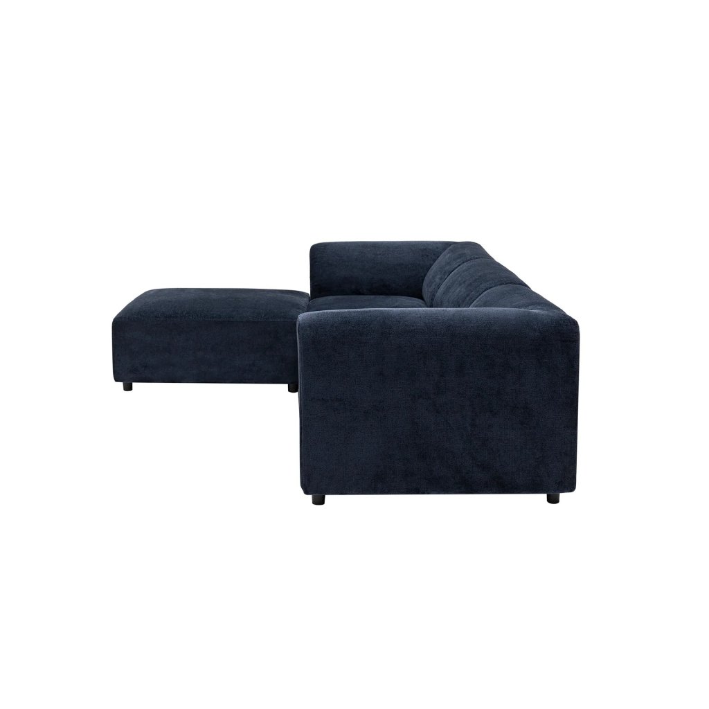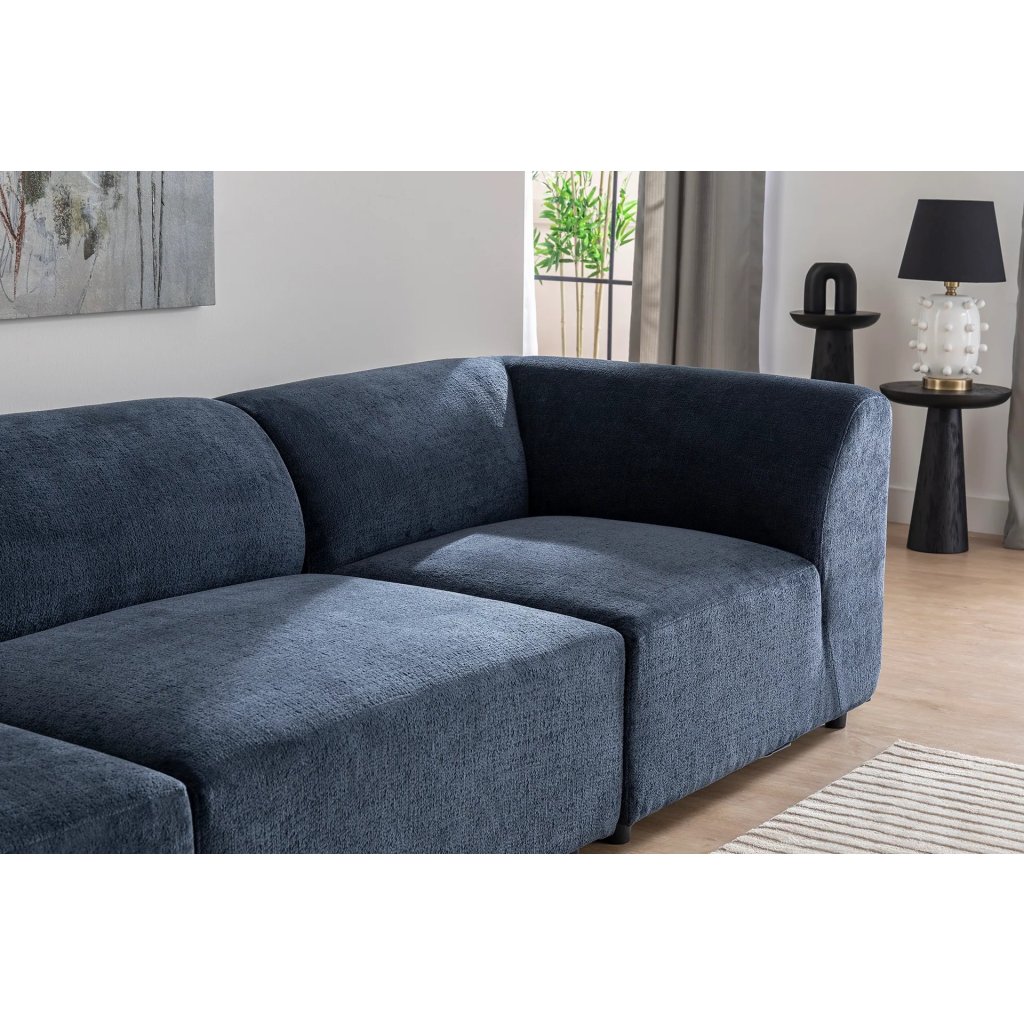 Designová rohová pohovka ALPHA od výrobce nábytku a pohovek Hanah Home. Pohovka ALPHA vás zaručeně zaujme na první pohled. Velice stylová rohová pohovka vás osloví nejen kvalitním zpracováním, ale také svým minimalistickým designem. Rám je kompletně vyroben z překližky. Krásná námořnicky modrá látka je ze 100% polyesteru. Sedák je vyplněn pěnou. Pohovka bude skvělým místem pro odpočinek a relaxaci. Pohovka je velmi prostorná. Pohodlně se na ni usadí pět lidí.
