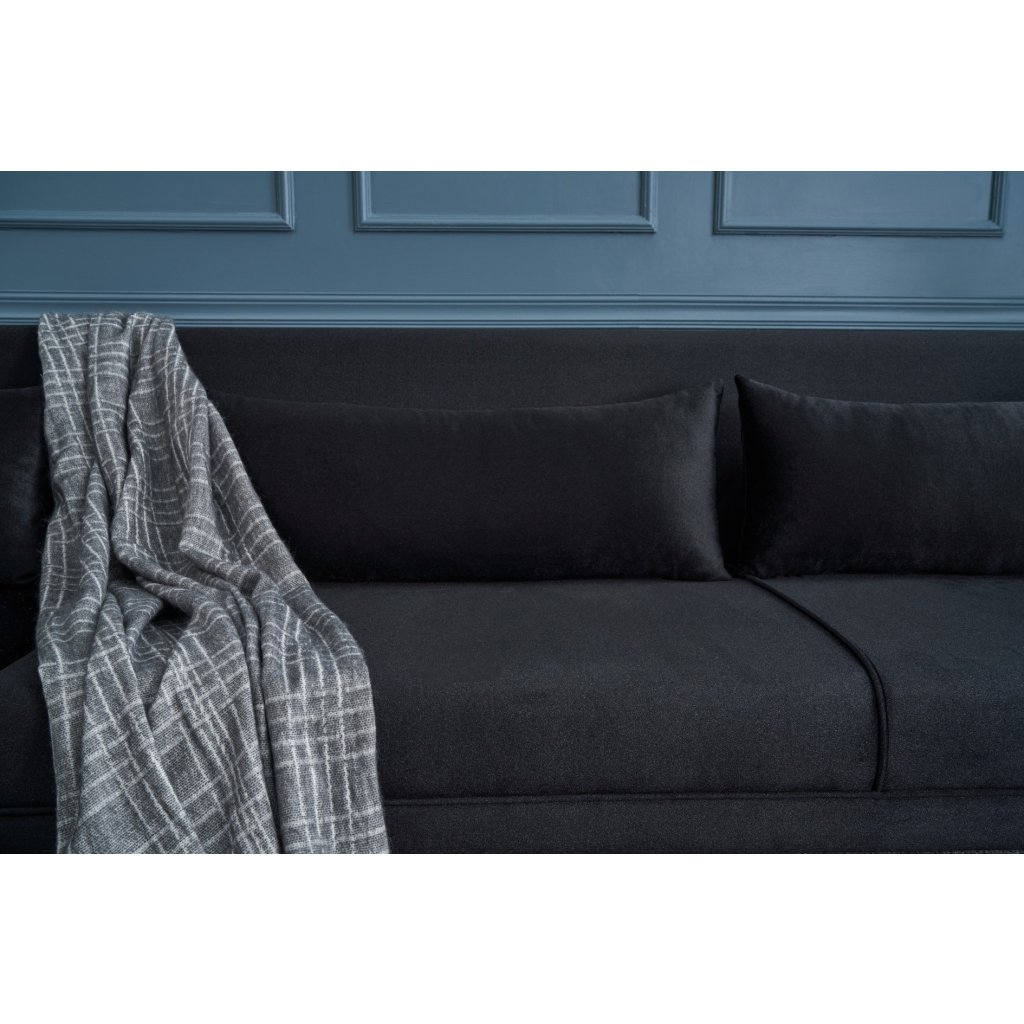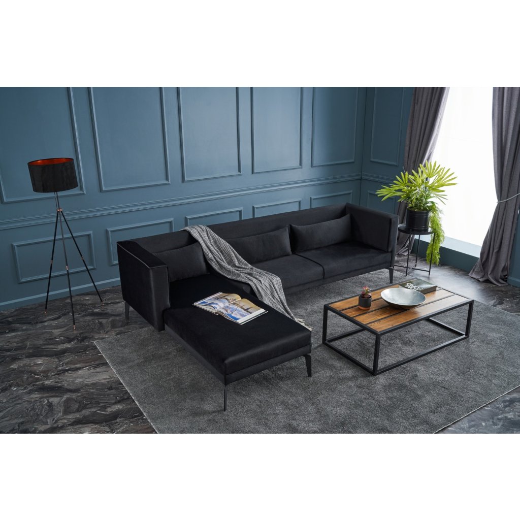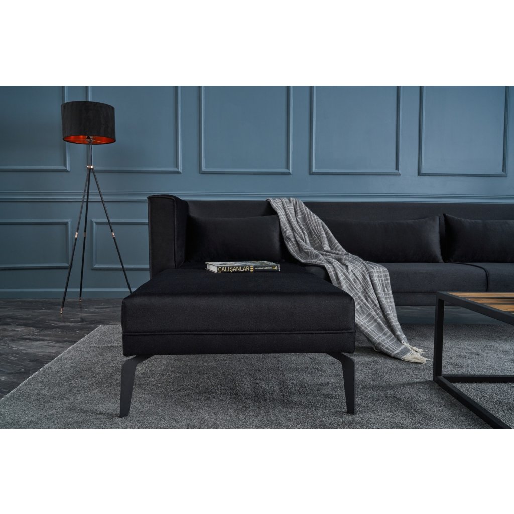 Krásná rohová pohovka ARDOSA od výrobce nábytku a pohovek HANAH HOME. Pohovka ARDOSA má konstrukci v kombinaci dřeva a desek, na níž je připevněna pěna a následně sametový potah v černé barvě. Pohovka má lenošku s rozměry 176x72cm na levé straně pro váš maximální komfort. Díky délce 244cm se na pohovku vejdou minimálně 3 lidé. Pohovka je pak opatřena 3 podlouhlými polštářky ve stejné barvě.