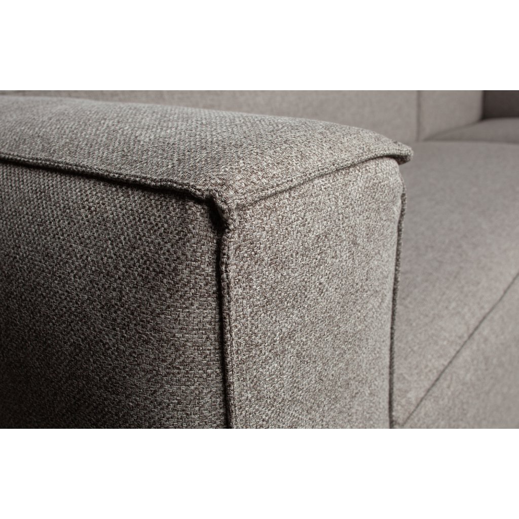 Designová rohová pohovka BEAN od holandského výrobce kvalitního nábytku WOOOD. Krásná robustní sedačka je navržena s odolnou konstrukcí a látkou proti vodě a skvrnám. Konstrukce pohovky je tvořena kombinací dřevotřísky, dřeva z buku a borovice následně opatřena odolnou a zároveň elastickou pěnou T42 a HR30, které zajistí velmi příjemné a kvalitní posezení. Následně je pohovka potažena kvalitní a odolnou látkou v kombinace 85% polyesteru a 15% vlny a to ve světle šedé barvě, která se hodí do každého interiéru. Pohovka je doplněna 3 krásnými polštářky ze stejné látky a ve stejné barvě. Na sedačku se pohodlně vejdou minimálně 3 osoby.