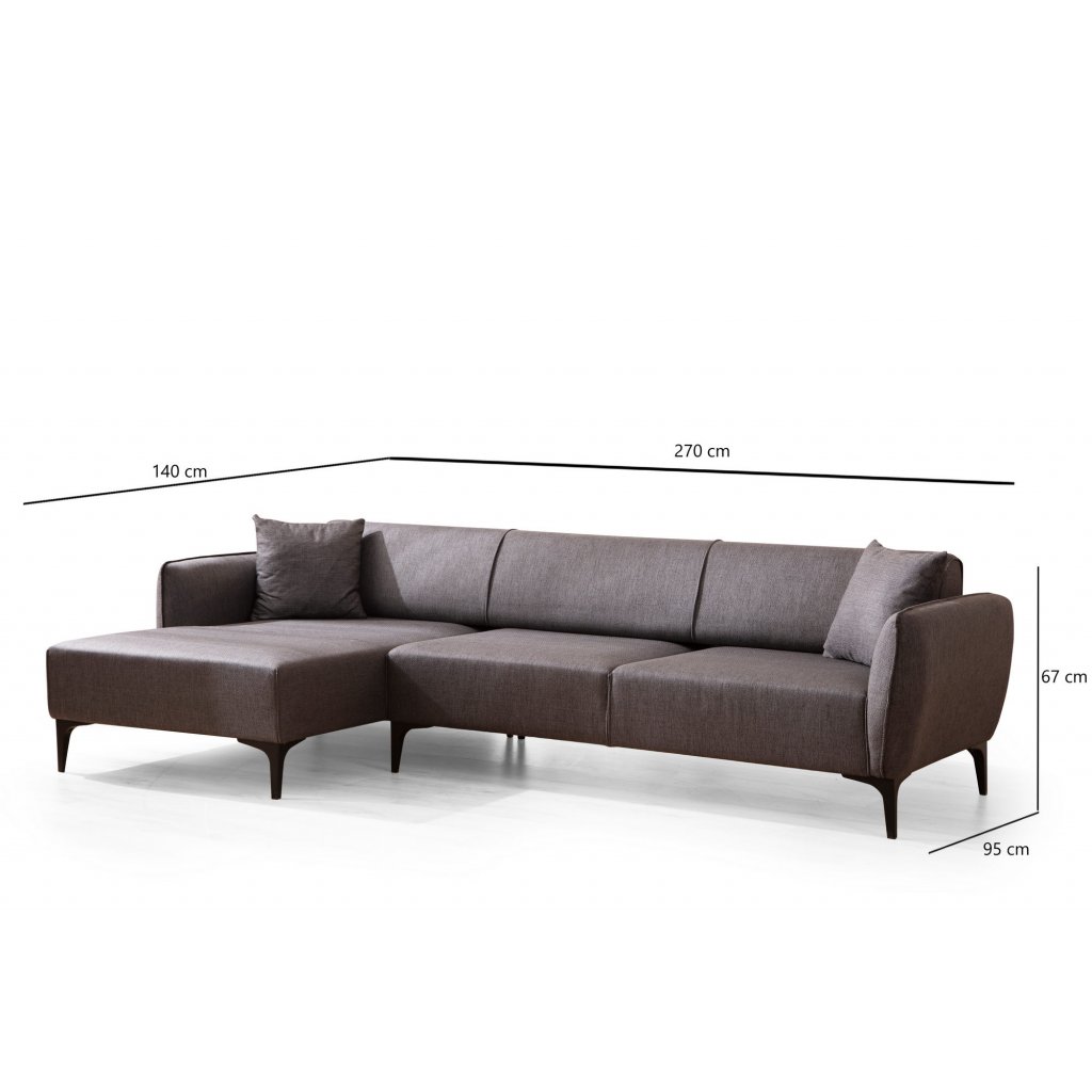 Rozkládací rohová BELISSIMO od výrobce nábytku a pohovek Hanah Home. BELISSIMO má konstrukci z bukového dřeva potaženou polyuretanovou pěnou a krásným potahem v tmavě šedé barvě. Pohovka BELISSIMO je se svou délkou 270 cm dostatečně prostorná pro pohodlné sezení 3 až 4 osob. Moderní vzhled, krásné provedení a elegantní černé nohy společně dodávají pohovce BELISSIMO vše, co od pohovky očekáváte. Díky sklapovací zadní opěrce, lze využít jako postel pro přespání vaší návštěvy.