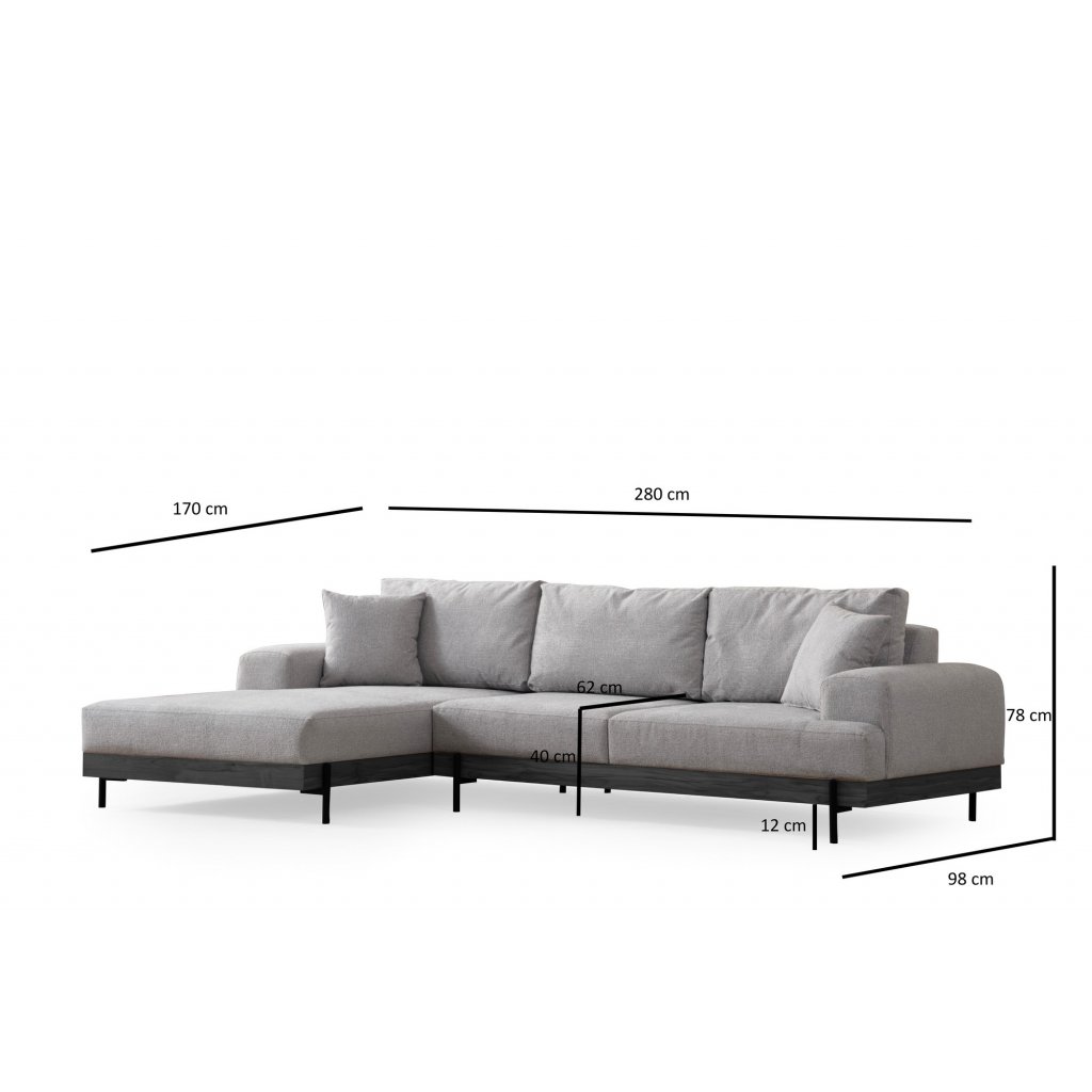 Rohová pohovka ETI šedá levá 280 cm