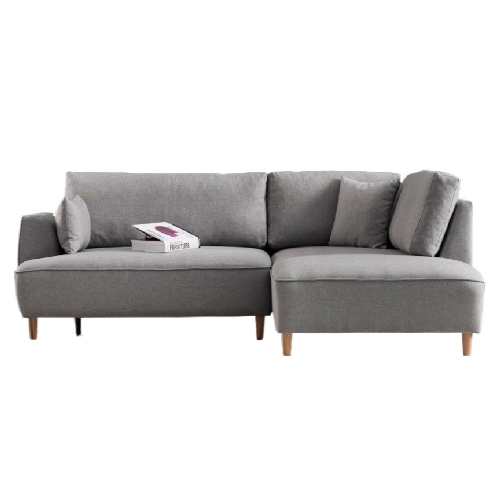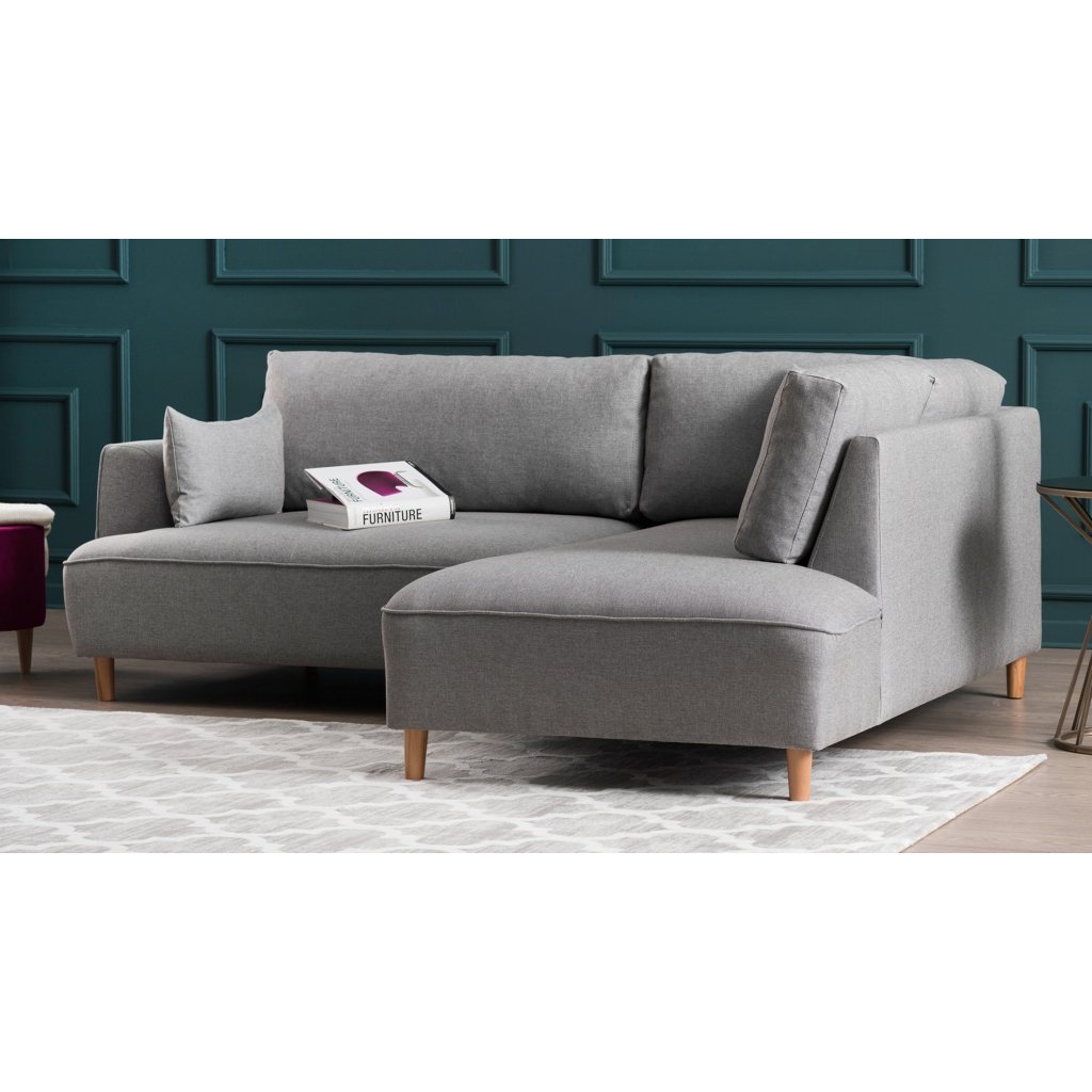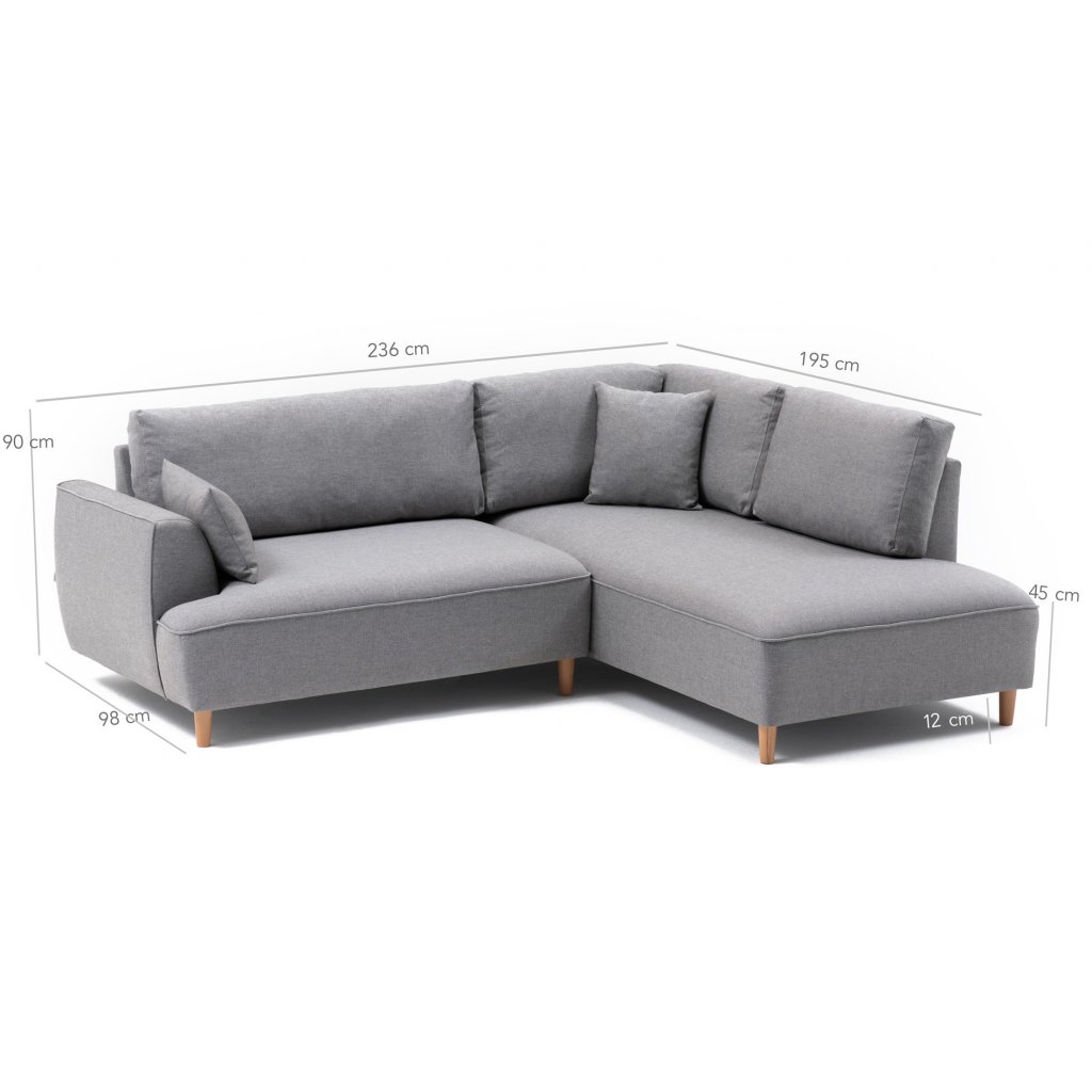 Designová pohovka FELIX od výrobce nábytku a pohovek Hanah Home. Krásná elegantní sedačka má 9 malých nohou, které přechází do rámu sedačky z bukového dřeva. Rám je potažen kvalitními pěnami díky nimž je sezení velmi příjemné a komfortní. Vaše pohodlí vám zajistí krásný a odolný látkových potah z polyesterových vláken ve světle šedé barvě. Lenoška se nachází v pravé části. Na sedačku se pohodlně vejdou minimálně 3 osoby. Pohovka je opatřena 4 velkými a 2 malými polštáři, na opěradle a bocích.
