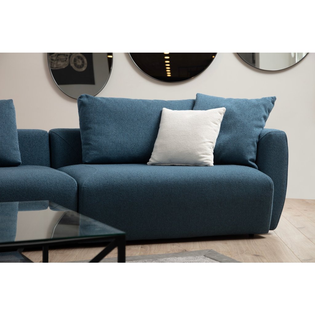Pohovka je čalouněná látkou v modrém odstínu a výborně tak doplní moderně zařízené interiéry, do kterých vnese útulnou atmosféru. MAYA vynikne ve světlých i tmavých prostorech. Váš obývací pokoj perfektně doladíte nábytkem z kovu nebo s kovovými doplňky. Pohovka je dostupná také v jiných variantách.