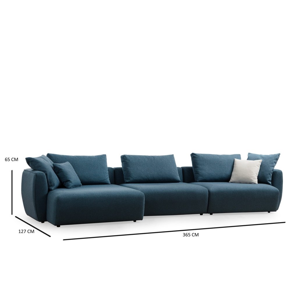 Designová čtyřmístná pohovka MAYA od výrobce nábytku a pohovek Hanah Home. Rohová pohovka MAYA vás zaručeně zaujme na první pohled. Velice stylová pohovka vás osloví nejen kvalitním zpracováním, ale také svým minimalistickým designem. Rám pohovky je vyroben z kombinace bukového dřeva a dřevotřísky. Krásná tmavě modrá látka je ze 100% polyesteru. Sedák je vyplněn pěnou. Pohovka bude skvělým místem pro odpočinek a relaxaci.
