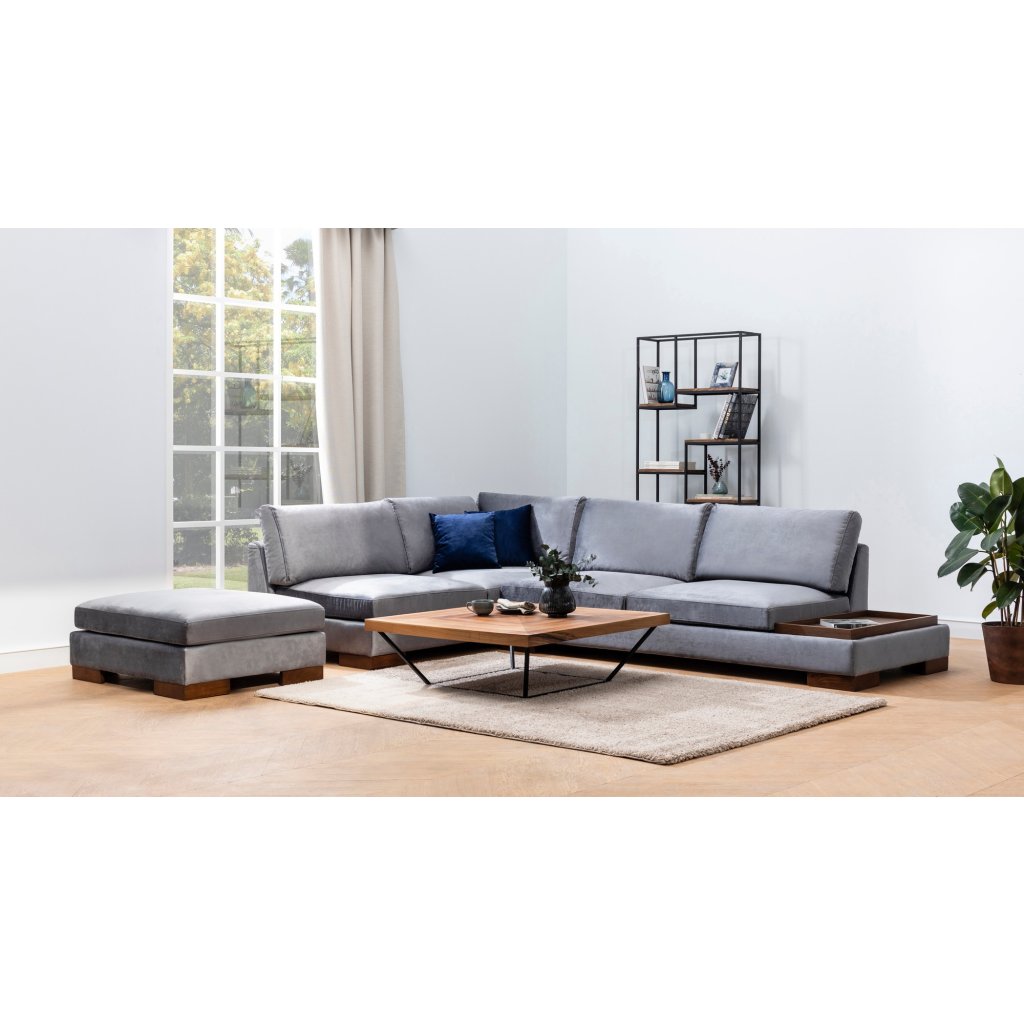 Nádherná rohová pohovka TULIP od výrobce nábytku a pohovek Hanah Home. Pohovka TULIP je dodávána s dřevěnými nohami v hnědé barvě, polyuretanovou výplní a povlakem ze 100% polyesteru v tmavě šedé barvě. Lenoška o délce 193cm je umístěna na levé straně pohovky. V pravé části se nachází velice praktická odkládací deska. Součástí pohovky je také krásný kvalitní puf ve stejném provedení. Rohová pohovka TULIP je k dostání i v dalších barevných variantách a pravém provedení.