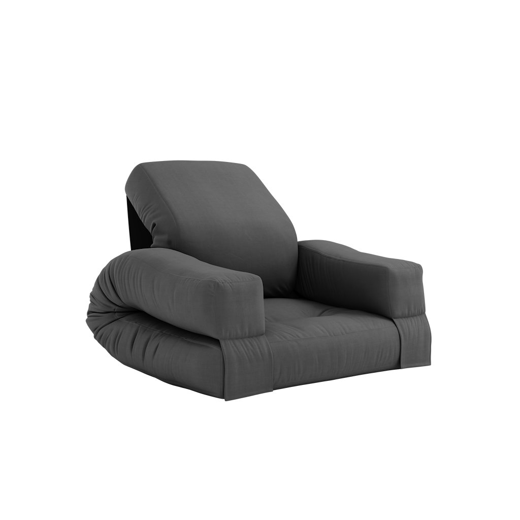 Rozkládací dětské křesílko MINI HIPPO od dánského výrobce skandinávského nábytku KARUP DESIGN. Toto nádherné a stylové rozkládací křeslo HIPPO rozzáří vaši domácnost. Je velmi pohodlné díky výplni z pěny, kterou finálně pokrývá příjemný a pohodlný povlak z bavlny a polyesteru v tmavě šedé barvě. Díky chytrému skládacímu designu můžete snadno proměnit z pohodlného křesla na měkkou matraci, kde si děti můžou odpočinout s jejich oblíbenou knížkou.