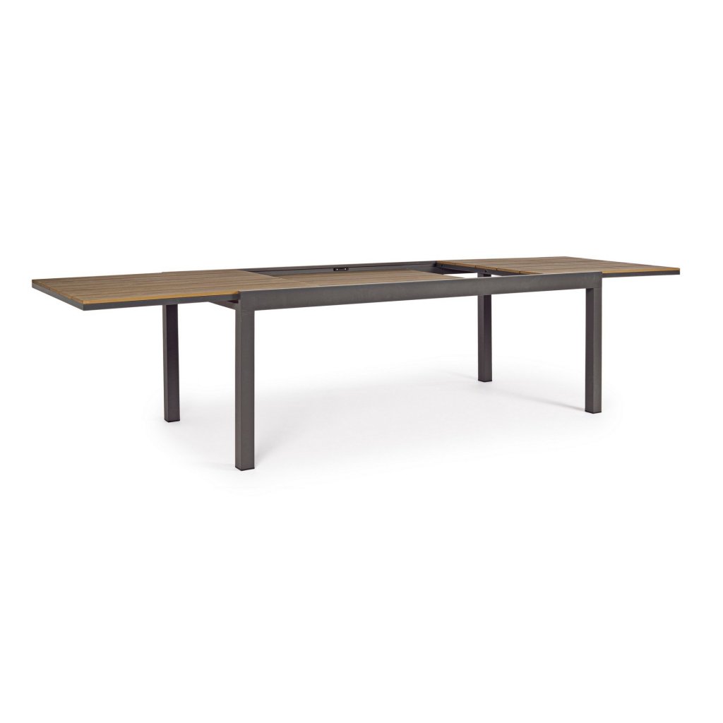 Stylový rozkládací zahradní stůl ELIAS od italského výrobce stylového nábytku BIZZOTTO v provedení antracitového lakovaného hliníku a umělého dřeva.