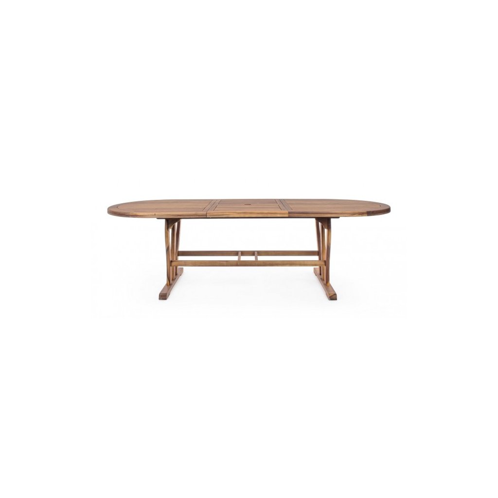 Designový dřevěný rozkládací stůl NOEMI od italských kolegů z firmy BIZZOTTO. Stůl je kompletně vyroben z akáciového dřeva. Materiál je velmi odolným vůči nepřiznivým vlivům vnějšího počasí díky své olejové úpravě. Stůl je velmi praktický díky možnosti rozložení. Dvojitá deska stolu má oválný tvar. Je to zkrátka úžasný pomocník na vaši zahradu. Šrouby jsou kvalitně zpracované. Jejich povrch je galvanizován, aby nekorodovaly.