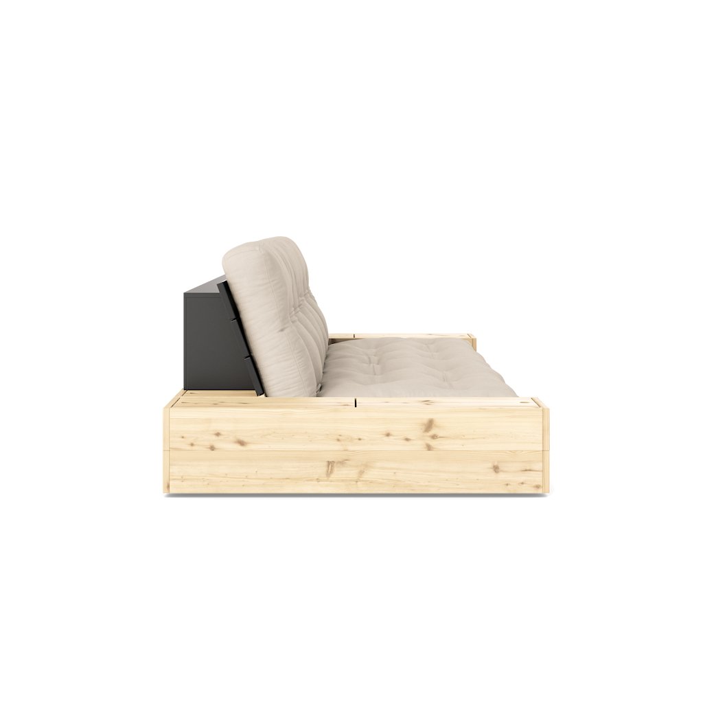Designová rozkládací pohovka BASE od dánské značky nádherného dánského dodavatele KARUP. BASE je ideální volbou pro garsonky, malé byty a kompaktní domy. Díky chytrému a jednoduchému mechanismu se pouhým zasunutím matrace pod základnu snadno promění z pohodlné postele v elegantní pohovku. Pohovka nabízí postranní úložné prostory, které nabízejí dvojí funkci - praktické skrytí věcí denní potřeby nebo stylové vystavení knih, dekorací či pokojových rostlin. Rám z borovice s certifikací FSC v kombinaci s ručně vyráběnou futonovou matrací zajišťuje vysoký komfort při sezení i ležení a propojuje funkčnost s nenápadným luxusem.