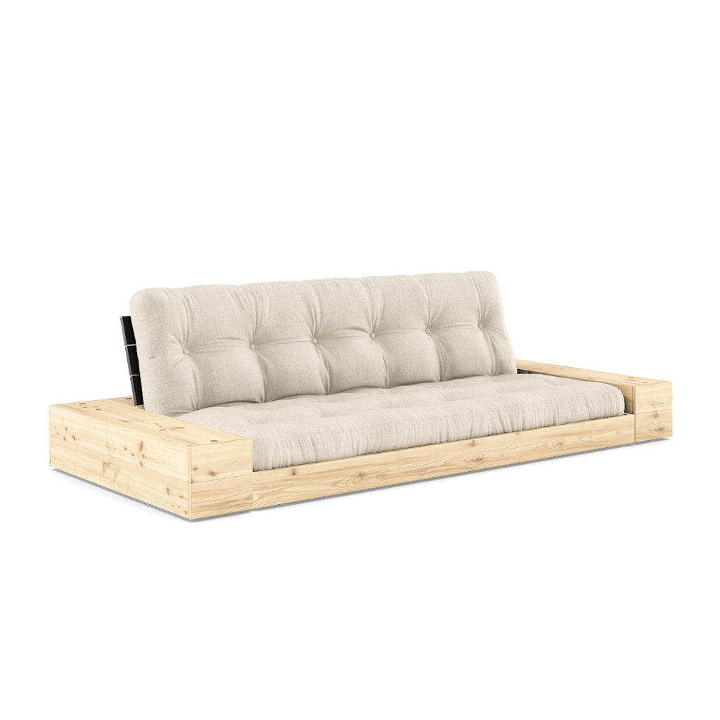 Designová rozkládací pohovka BASE od dánské značky nádherného dánského dodavatele KARUP. BASE je ideální volbou pro garsonky, malé byty a kompaktní domy. Díky chytrému a jednoduchému mechanismu se pouhým zasunutím matrace pod základnu snadno promění z pohodlné postele v elegantní pohovku. Pohovka nabízí postranní úložné prostory, které nabízejí dvojí funkci - praktické skrytí věcí denní potřeby nebo stylové vystavení knih, dekorací či pokojových rostlin. Rám z borovice s certifikací FSC v kombinaci s ručně vyráběnou futonovou matrací zajišťuje vysoký komfort při sezení i ležení a propojuje funkčnost s nenápadným luxusem.