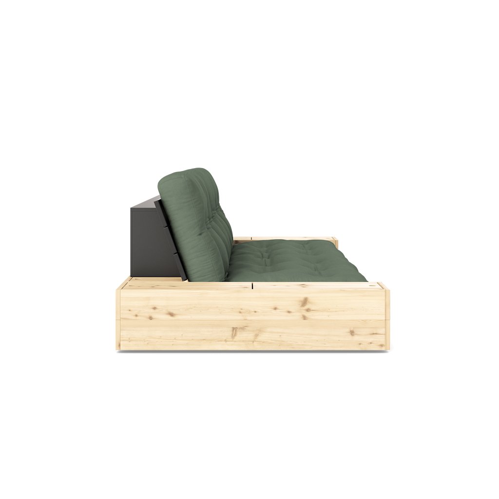 Designová rozkládací pohovka BASE od dánské značky nádherného dánského dodavatele KARUP. BASE je ideální volbou pro garsonky, malé byty a kompaktní domy. Díky chytrému a jednoduchému mechanismu se pouhým zasunutím matrace pod základnu snadno promění z pohodlné postele v elegantní pohovku. Pohovka nabízí postranní úložné prostory, které nabízejí dvojí funkci - praktické skrytí věcí denní potřeby nebo stylové vystavení knih, dekorací či pokojových rostlin. Rám z borovice s certifikací FSC v kombinaci s ručně vyráběnou futonovou matrací zajišťuje vysoký komfort při sezení i ležení a propojuje funkčnost s nenápadným luxusem.