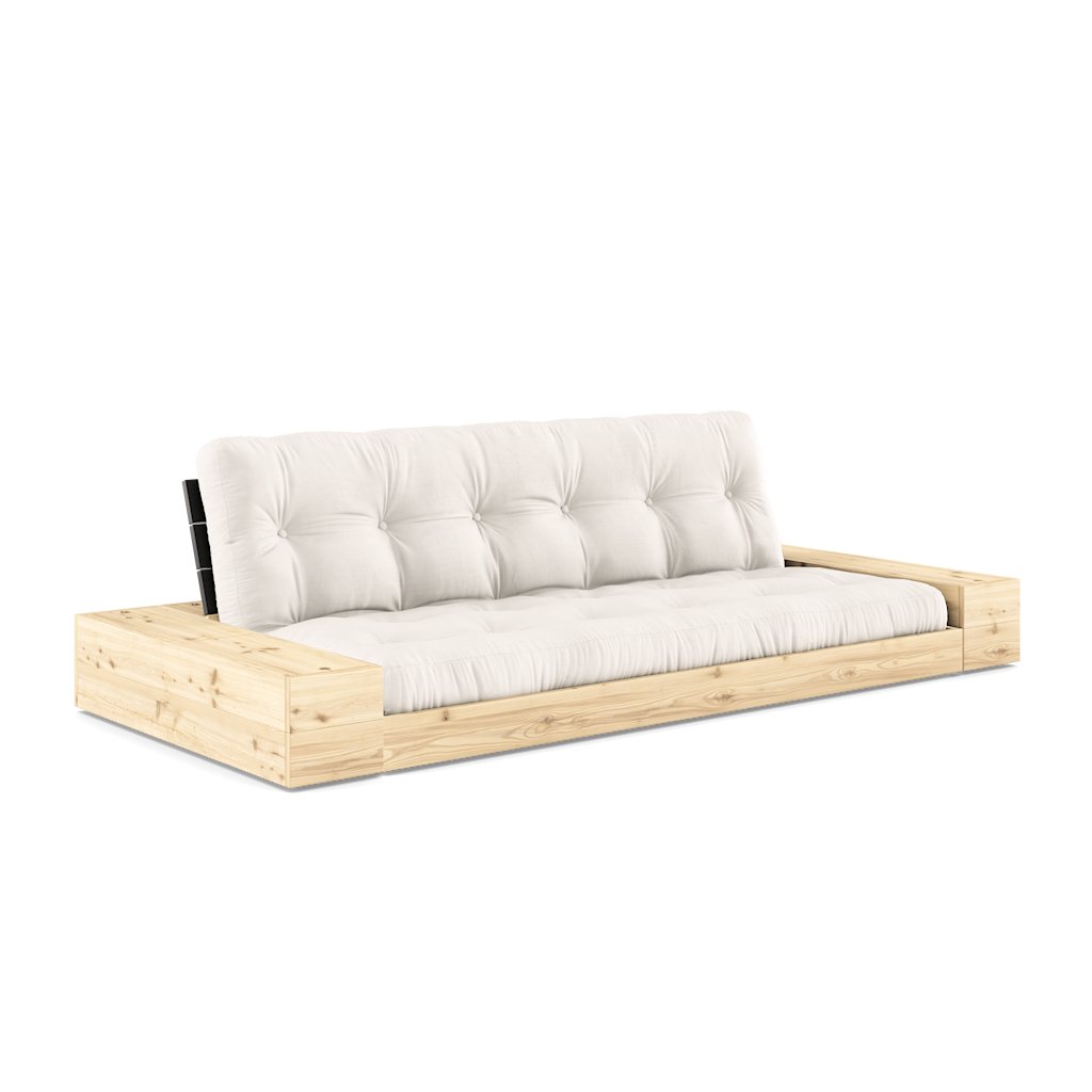 Designová rozkládací pohovka BASE od dánské značky nádherného dánského dodavatele KARUP. BASE je ideální volbou pro garsonky, malé byty a kompaktní domy. Díky chytrému a jednoduchému mechanismu se pouhým zasunutím matrace pod základnu snadno promění z pohodlné postele v elegantní pohovku. Pohovka nabízí postranní úložné prostory, které nabízejí dvojí funkci - praktické skrytí věcí denní potřeby nebo stylové vystavení knih, dekorací či pokojových rostlin. Rám z borovice s certifikací FSC v kombinaci s ručně vyráběnou futonovou matrací zajišťuje vysoký komfort při sezení i ležení a propojuje funkčnost s nenápadným luxusem.