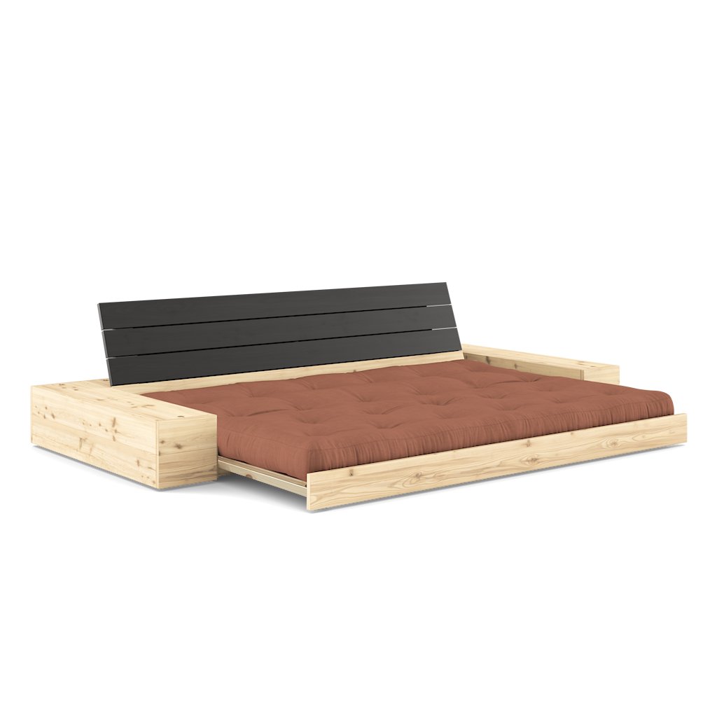 Designová rozkládací pohovka BASE od dánské značky nádherného dánského dodavatele KARUP. BASE je ideální volbou pro garsonky, malé byty a kompaktní domy. Díky chytrému a jednoduchému mechanismu se pouhým zasunutím matrace pod základnu snadno promění z pohodlné postele v elegantní pohovku. Pohovka nabízí postranní úložné prostory, které nabízejí dvojí funkci - praktické skrytí věcí denní potřeby nebo stylové vystavení knih, dekorací či pokojových rostlin. Rám z borovice s certifikací FSC v kombinaci s ručně vyráběnou futonovou matrací zajišťuje vysoký komfort při sezení i ležení a propojuje funkčnost s nenápadným luxusem.
