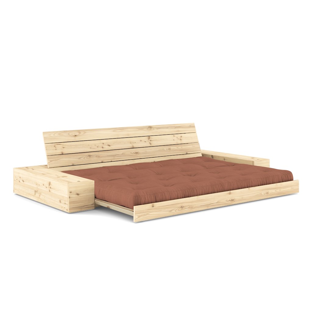 Designová rozkládací pohovka BASE od dánské značky nádherného dánského dodavatele KARUP. BASE je ideální volbou pro garsonky, malé byty a kompaktní domy. Díky chytrému a jednoduchému mechanismu se pouhým zasunutím matrace pod základnu snadno promění z pohodlné postele v elegantní pohovku. Pohovka nabízí postranní úložné prostory, které nabízejí dvojí funkci - praktické skrytí věcí denní potřeby nebo stylové vystavení knih, dekorací či pokojových rostlin. Rám z borovice s certifikací FSC v kombinaci s ručně vyráběnou futonovou matrací zajišťuje vysoký komfort při sezení i ležení a propojuje funkčnost s nenápadným luxusem.