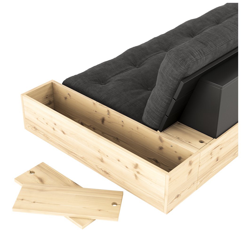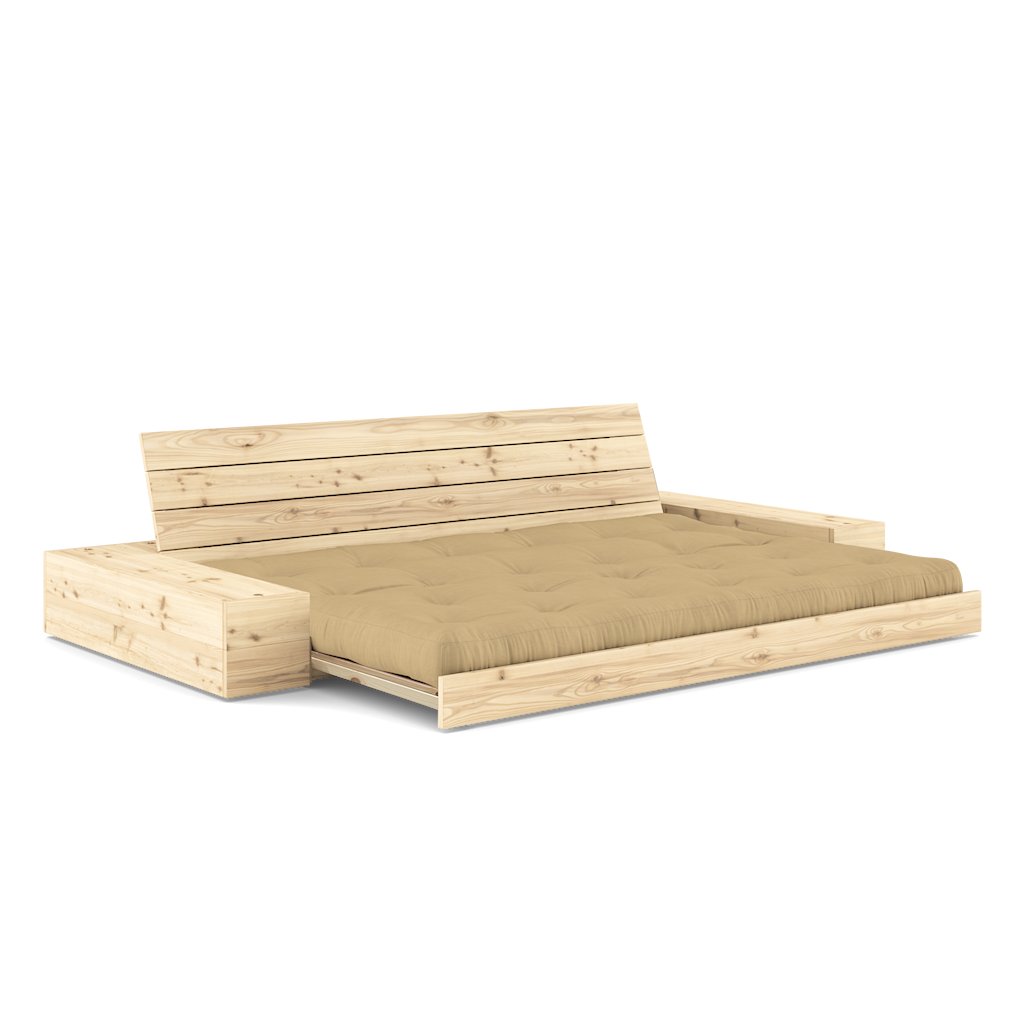 Designová rozkládací pohovka BASE od dánské značky nádherného dánského dodavatele KARUP. BASE je ideální volbou pro garsonky, malé byty a kompaktní domy. Díky chytrému a jednoduchému mechanismu se pouhým zasunutím matrace pod základnu snadno promění z pohodlné postele v elegantní pohovku. Pohovka nabízí postranní úložné prostory, které nabízejí dvojí funkci - praktické skrytí věcí denní potřeby nebo stylové vystavení knih, dekorací či pokojových rostlin. Rám z borovice s certifikací FSC v kombinaci s ručně vyráběnou futonovou matrací zajišťuje vysoký komfort při sezení i ležení a propojuje funkčnost s nenápadným luxusem.