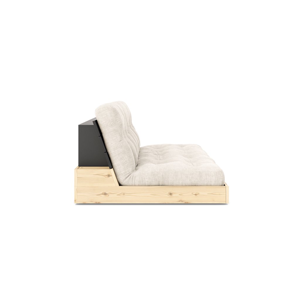 Designová rozkládací pohovka BASE od dánské značky nádherného dánského dodavatele KARUP. BASE je ideální volbou pro garsonky, malé byty a kompaktní domy. Díky chytrému a jednoduchému mechanismu se pouhým zasunutím matrace pod základnu snadno promění z pohodlné postele v elegantní pohovku. Rám z borovice s certifikací FSC v kombinaci s ručně vyráběnou futonovou matrací zajišťuje vysoký komfort při sezení i ležení a propojuje funkčnost s nenápadným luxusem. Pohovka je k dispozici také v provedení s postranním úložným prostorem.