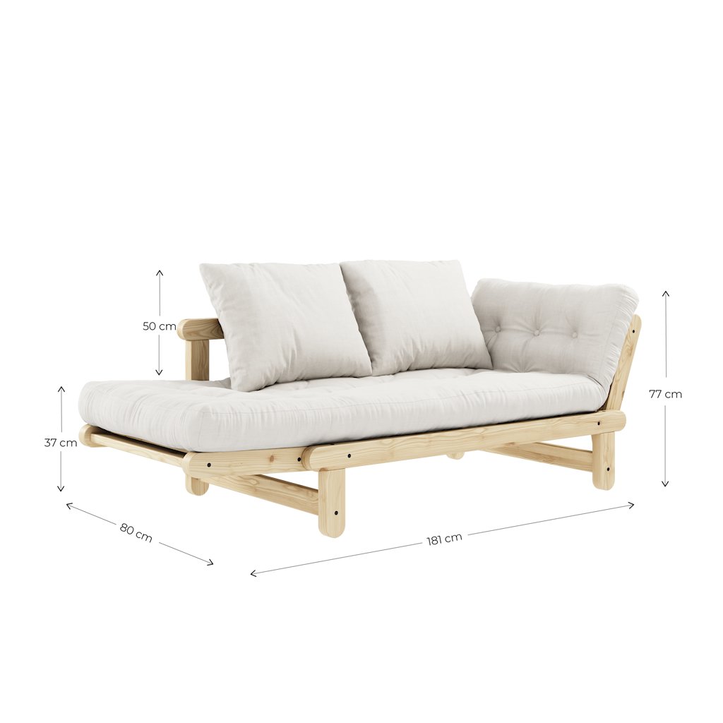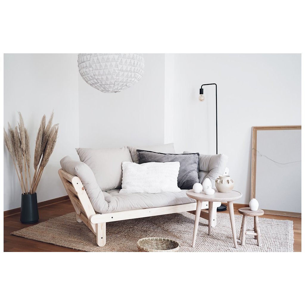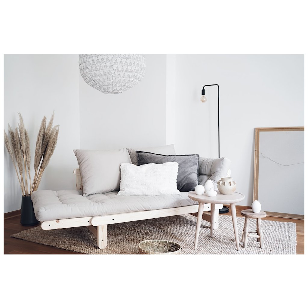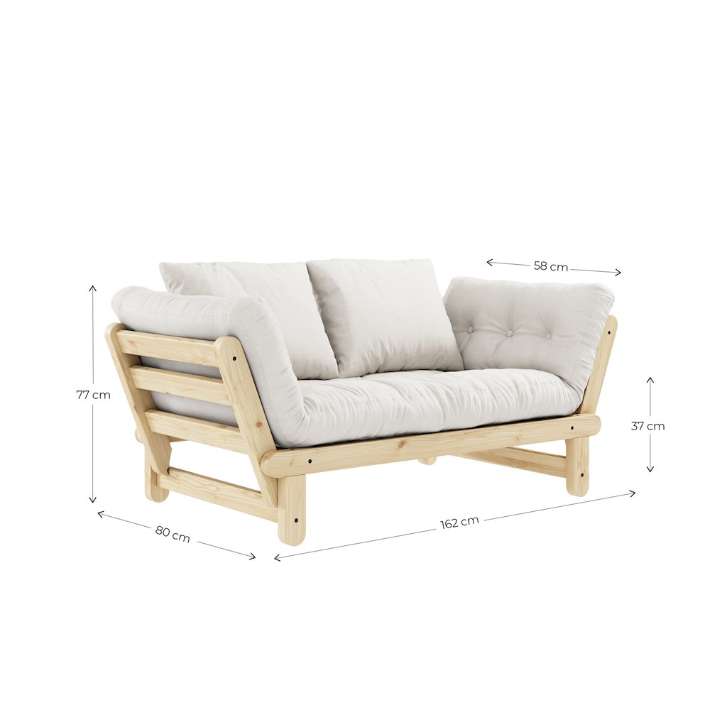 Dvoumístná rozkládací pohovka BEAT od stylového výrobce nábytku a pohovek KARUP DESIGN. Pohovka je vyrobena z vysoce kvalitního borovicového dřeva s certifikací FSC ve světlém provedení a futonové matrace s pěnovou výplní, kterou pokrývá bavlněný a lněný povlak ve tmavě hnědé barvě. Moderní vzhled, krásné provedení a elegantní nohy společně dodávají pohovce BEAT vše, co od rozkládací pohovky očekáváte. Díky délce 162 cm se na pohovku pohodlně vejdou 2 osoby. Při rozložení získáte místo na spaní s rozměry až 80x200 cm, což zajistí dostatečný prostor pro přespání vaší návštěvy. Jednoduchým rozložením jedné boční opěrky získáte stylovou zadní oporu.