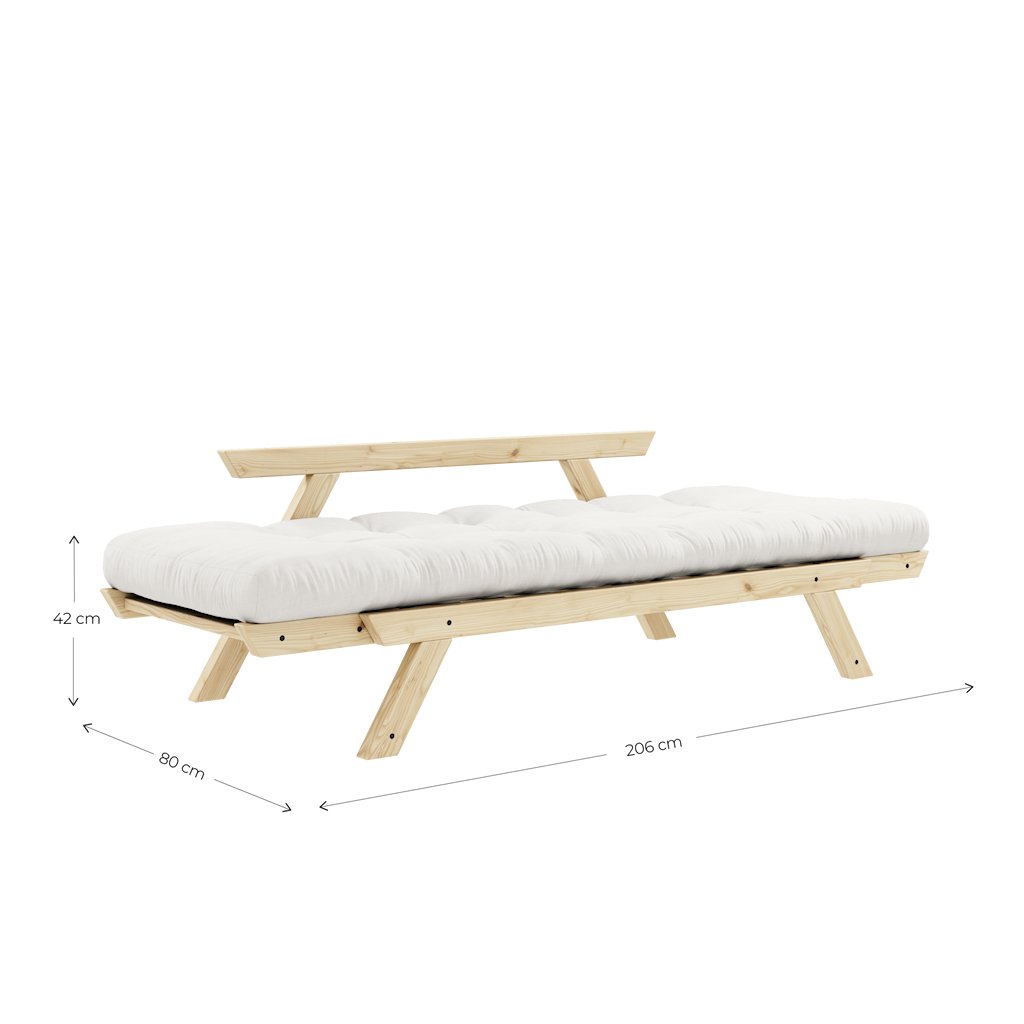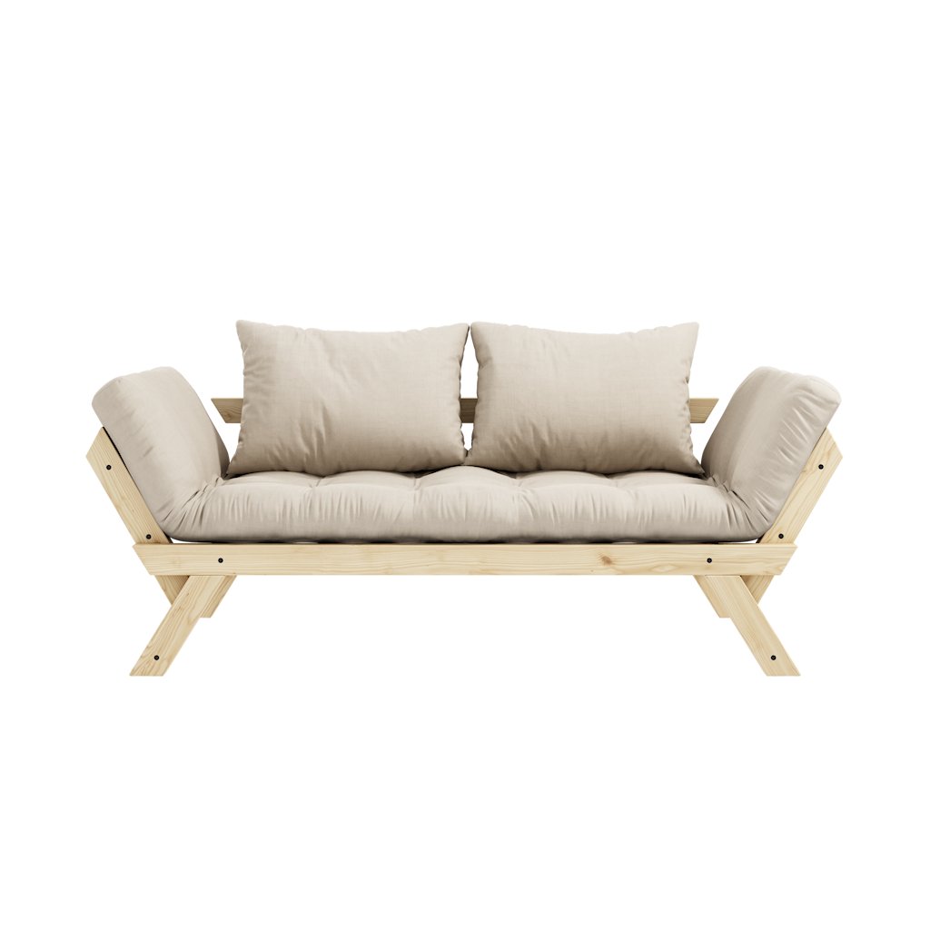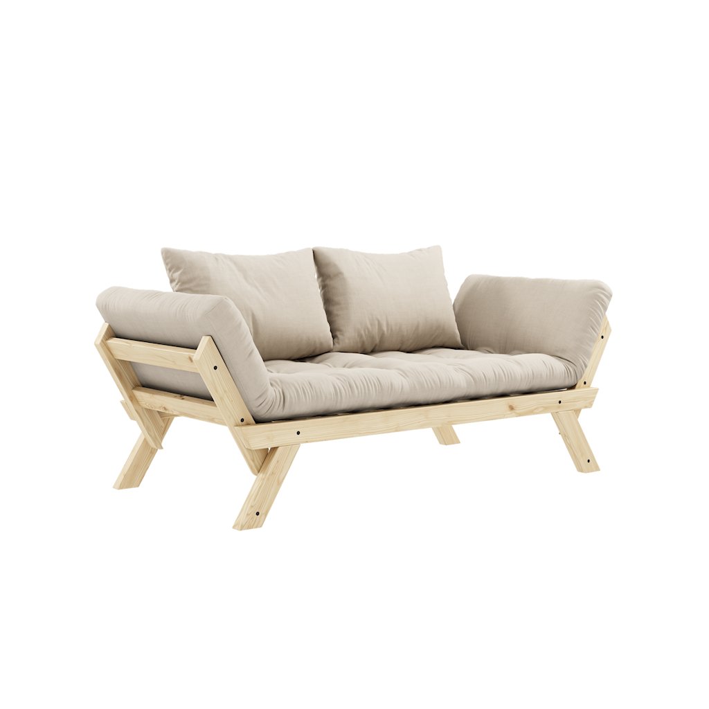 Designová rozkládací pohovka BEBOP od stylového výrobce nábytku a pohovek KARUP DESIGN. Pohovka je dodávána z vysoce kvalitního borovicového dřeva s certifikací FSC ve světlém provedení. Komfort zajišťuje futonová matrace s pěnovou výplní, kterou pokrývá bavlněný a polyesterový povlak v béžové barvě. Moderní vzhled, krásné provedení a elegantní nohy společně dodávají pohovce BEPOP vše, co od rozkládací pohovky očekáváte. Délka 174 cm zajišťuje, že se na pohovku pohodlně vejdou 2 osoby. Při rozložení získáte místo na spaní s rozměry až 206x108 cm, což zajistí dostatečný prostor pro přespání vaší návštěvy. Pohovka se rozkládá na bočních stranách, díky tomu můžete rozložit pouze jednu opěrku.