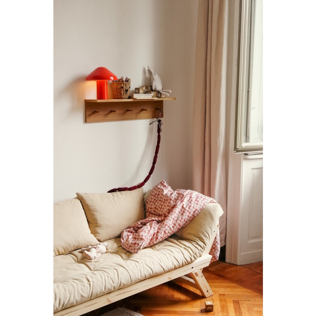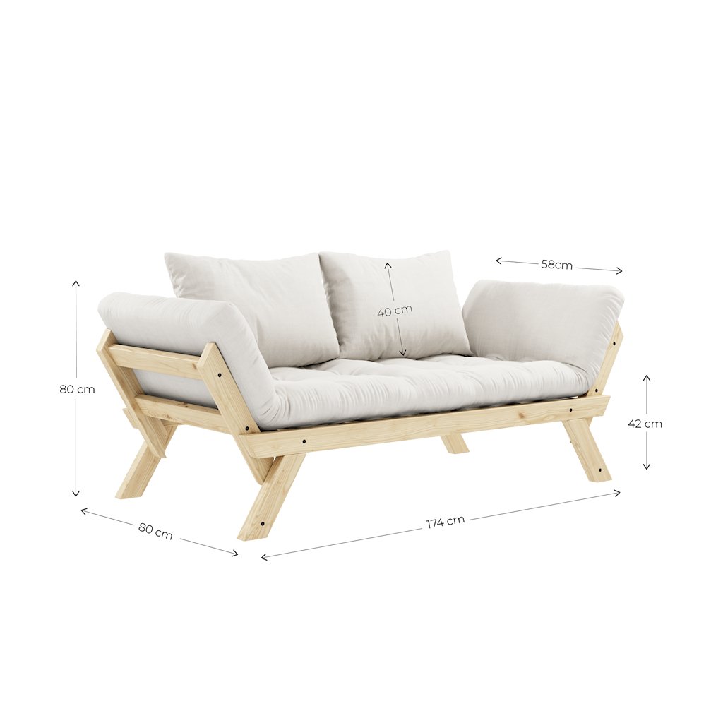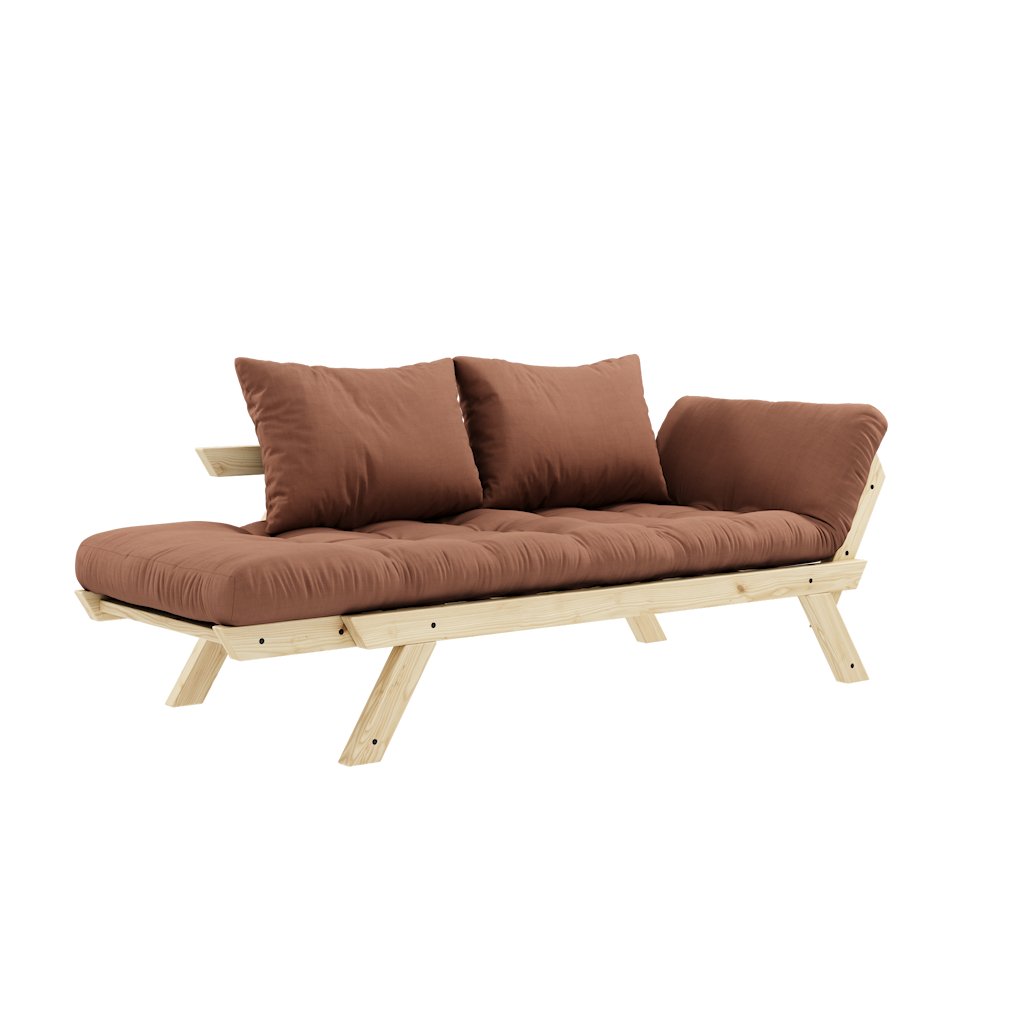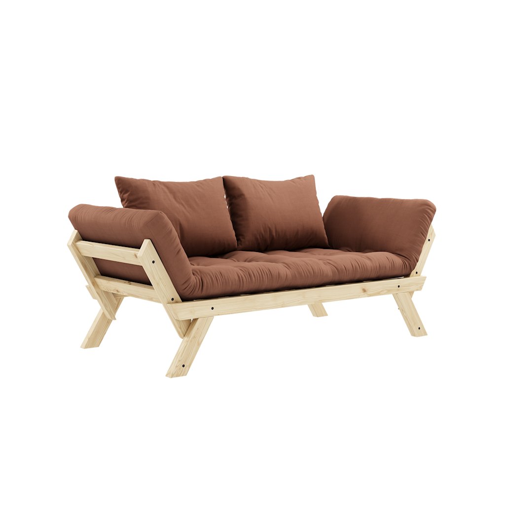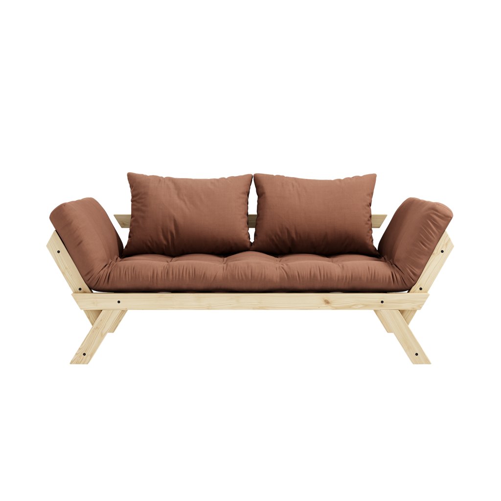 Designová rozkládací pohovka BEBOP od stylového výrobce nábytku a pohovek KARUP DESIGN. Pohovka je dodávána z vysoce kvalitního borovicového dřeva s certifikací FSC ve světlém provedení. Komfort zajišťuje futonová matrace s pěnovou výplní, kterou pokrývá bavlněný a polyesterový povlak v hliněné hnědé barvě. Moderní vzhled, krásné provedení a elegantní nohy společně dodávají pohovce BEPOP vše, co od rozkládací pohovky očekáváte. Délka 174 cm zajišťuje, že se na pohovku pohodlně vejdou 2 osoby. Při rozložení získáte místo na spaní s rozměry až 206x108 cm, což zajistí dostatečný prostor pro přespání vaší návštěvy. Pohovka se rozkládá na bočních stranách, díky tomu můžete rozložit pouze jednu opěrku.