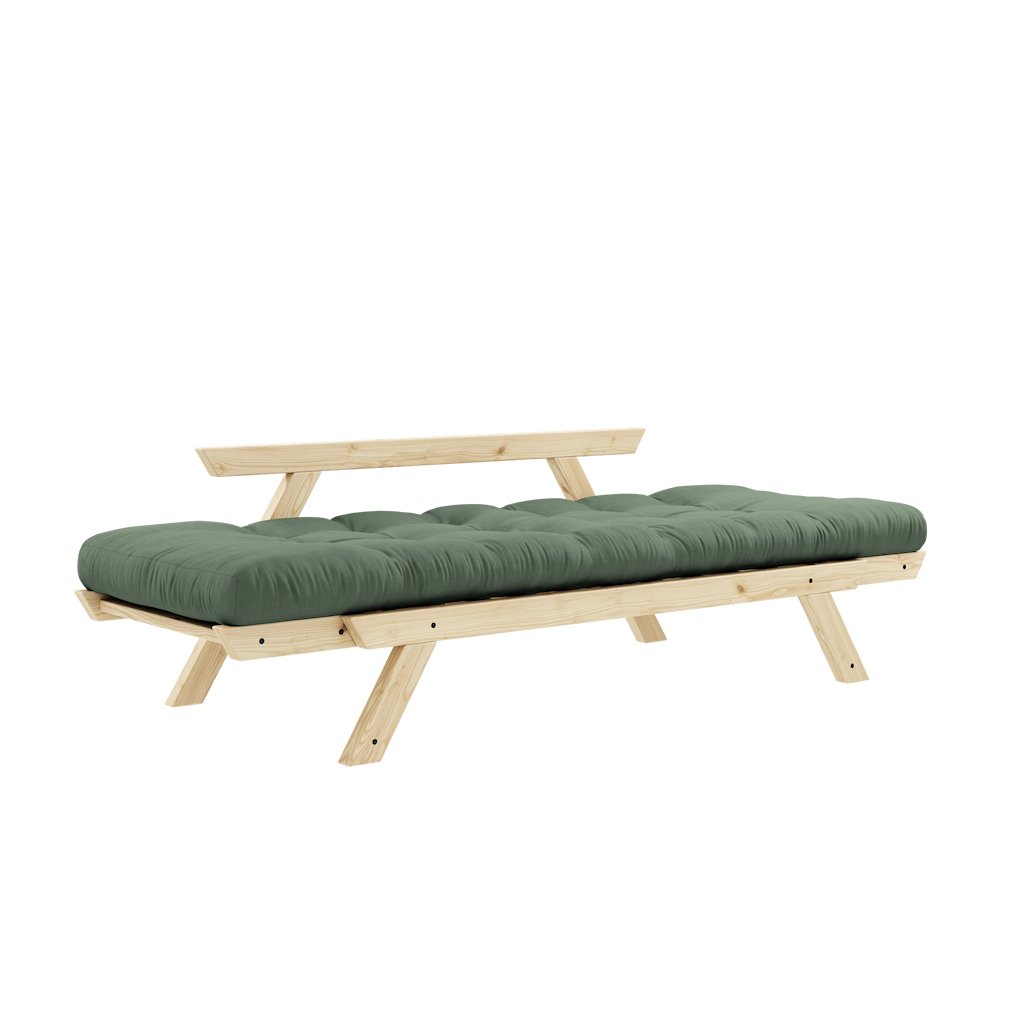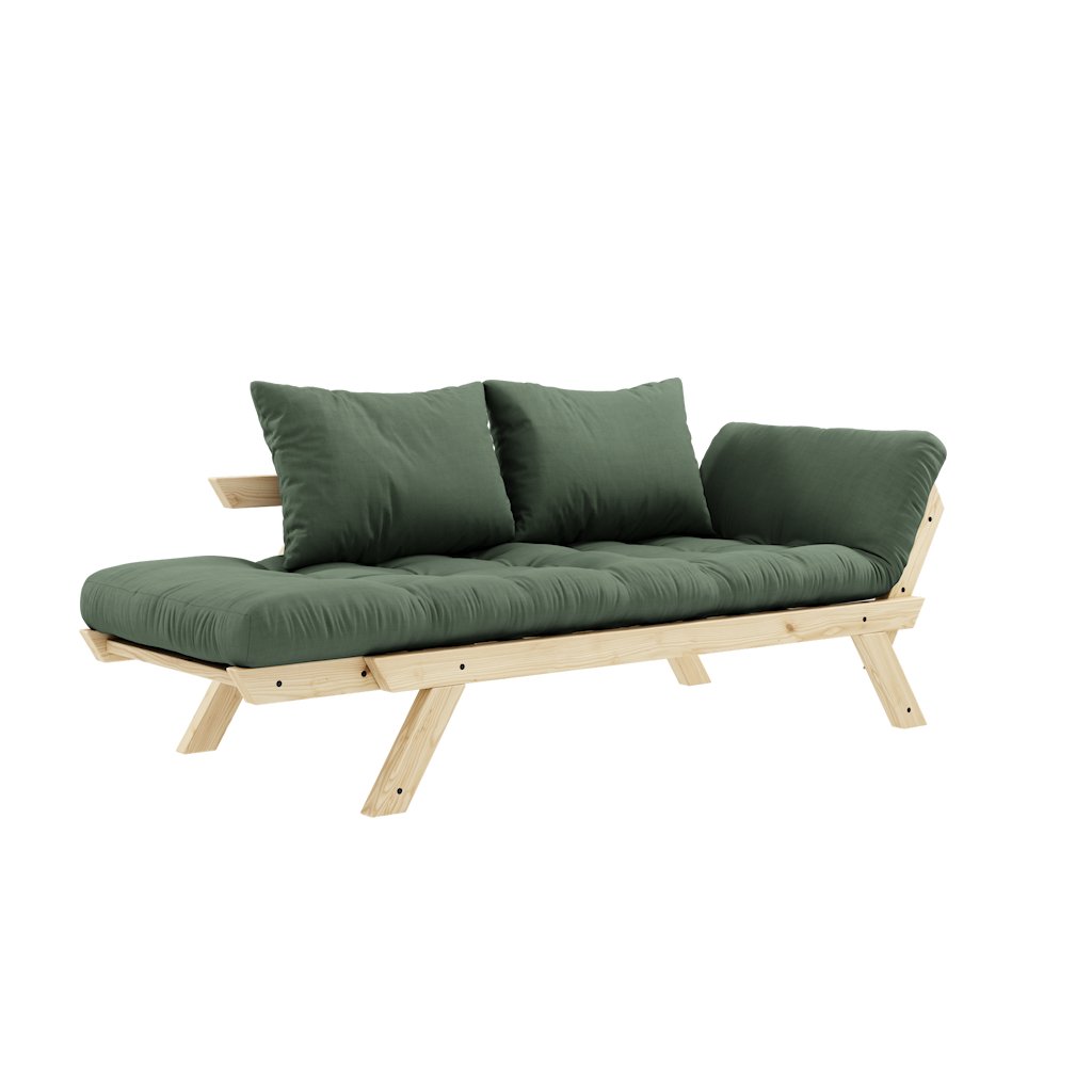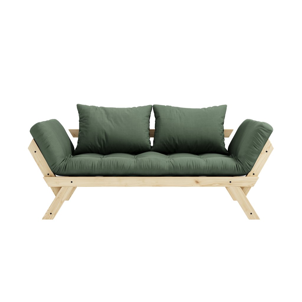 Designová rozkládací pohovka BEBOP od stylového výrobce nábytku a pohovek KARUP DESIGN. Pohovka je dodávána z vysoce kvalitního borovicového dřeva s certifikací FSC ve světlém provedení. Komfort zajišťuje futonová matrace s pěnovou výplní, kterou pokrývá bavlněný a polyesterový povlak v olivové barvě. Moderní vzhled, krásné provedení a elegantní nohy společně dodávají pohovce BEPOP vše, co od rozkládací pohovky očekáváte. Délka 174 cm zajišťuje, že se na pohovku pohodlně vejdou 2 osoby. Při rozložení získáte místo na spaní s rozměry až 206x108 cm, což zajistí dostatečný prostor pro přespání vaší návštěvy. Pohovka se rozkládá na bočních stranách, díky tomu můžete rozložit pouze jednu opěrku.