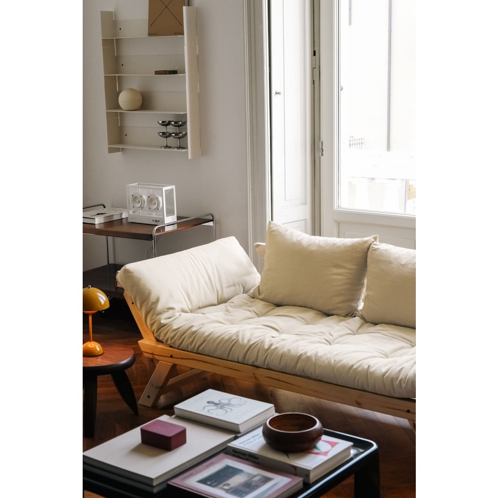 Designová rozkládací pohovka BEBOP od stylového výrobce nábytku a pohovek KARUP DESIGN. Pohovka je dodávána z vysoce kvalitního borovicového dřeva s certifikací FSC ve světlém provedení. Komfort zajišťuje futonová matrace s pěnovou výplní, kterou pokrývá bavlněný a polyesterový povlak v tmavě hnědé barvě. Moderní vzhled, krásné provedení a elegantní nohy společně dodávají pohovce BEPOP vše, co od rozkládací pohovky očekáváte. Délka 174 cm zajišťuje, že se na pohovku pohodlně vejdou 2 osoby. Při rozložení získáte místo na spaní s rozměry až 206x108 cm, což zajistí dostatečný prostor pro přespání vaší návštěvy. Pohovka se rozkládá na bočních stranách, díky tomu můžete rozložit pouze jednu opěrku.