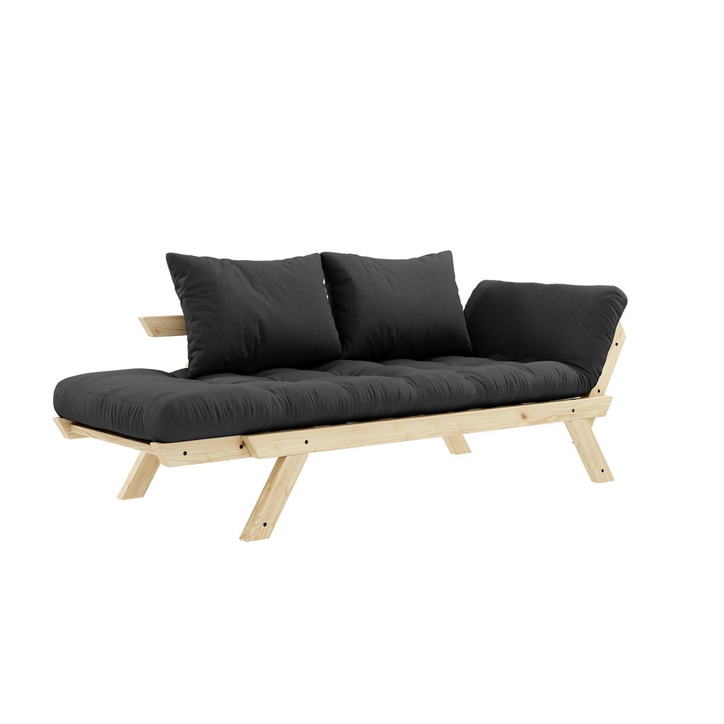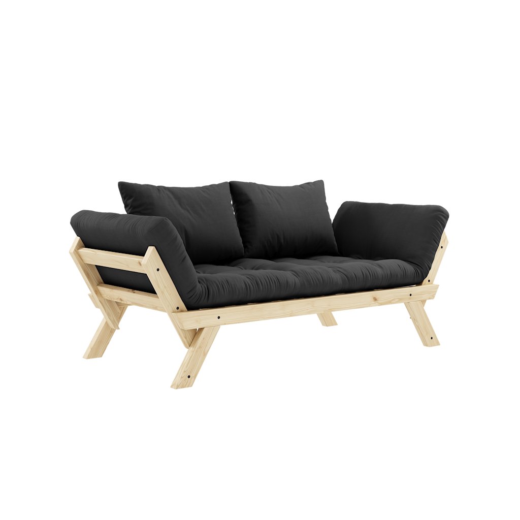 Designová rozkládací pohovka BEBOP od stylového výrobce nábytku a pohovek KARUP DESIGN. Pohovka je dodávána z vysoce kvalitního borovicového dřeva s certifikací FSC ve světlém provedení. Komfort zajišťuje futonová matrace s pěnovou výplní, kterou pokrývá bavlněný a polyesterový povlak v tmavě šedé barvě. Moderní vzhled, krásné provedení a elegantní nohy společně dodávají pohovce BEPOP vše, co od rozkládací pohovky očekáváte. Délka 174 cm zajišťuje, že se na pohovku pohodlně vejdou 2 osoby. Při rozložení získáte místo na spaní s rozměry až 206x108 cm, což zajistí dostatečný prostor pro přespání vaší návštěvy. Pohovka se rozkládá na bočních stranách, díky tomu můžete rozložit pouze jednu opěrku.