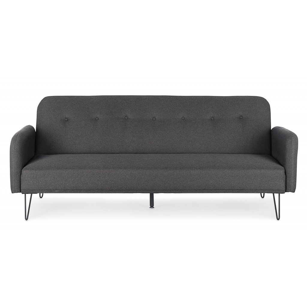 Rozkládací pohovka BRIDJET od italského výrobce stylového nábytku BIZZOTTO. Tato jednoduchá ale zajímavá pohovka je sestavena ze 4 nohou z tenkého dvojitého kovu a 1 přídavné ústřední kovové podpěře, která zajišťuje rozložení váhy a maximální nosnost. Rám pohovky tvoří kusy eukalyptového dřeva pokryté pevnou polyuretanovou pěnou. Finální povlak je z hebkého sametu ze 100% polyesteru v krásné a elegantní černé barvě. Pohovku se dá krásně rozložit a v okamžiku získáte skvělé dvojlůžko pro vaše návštěvy.