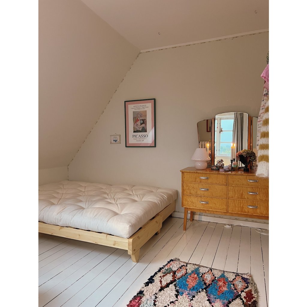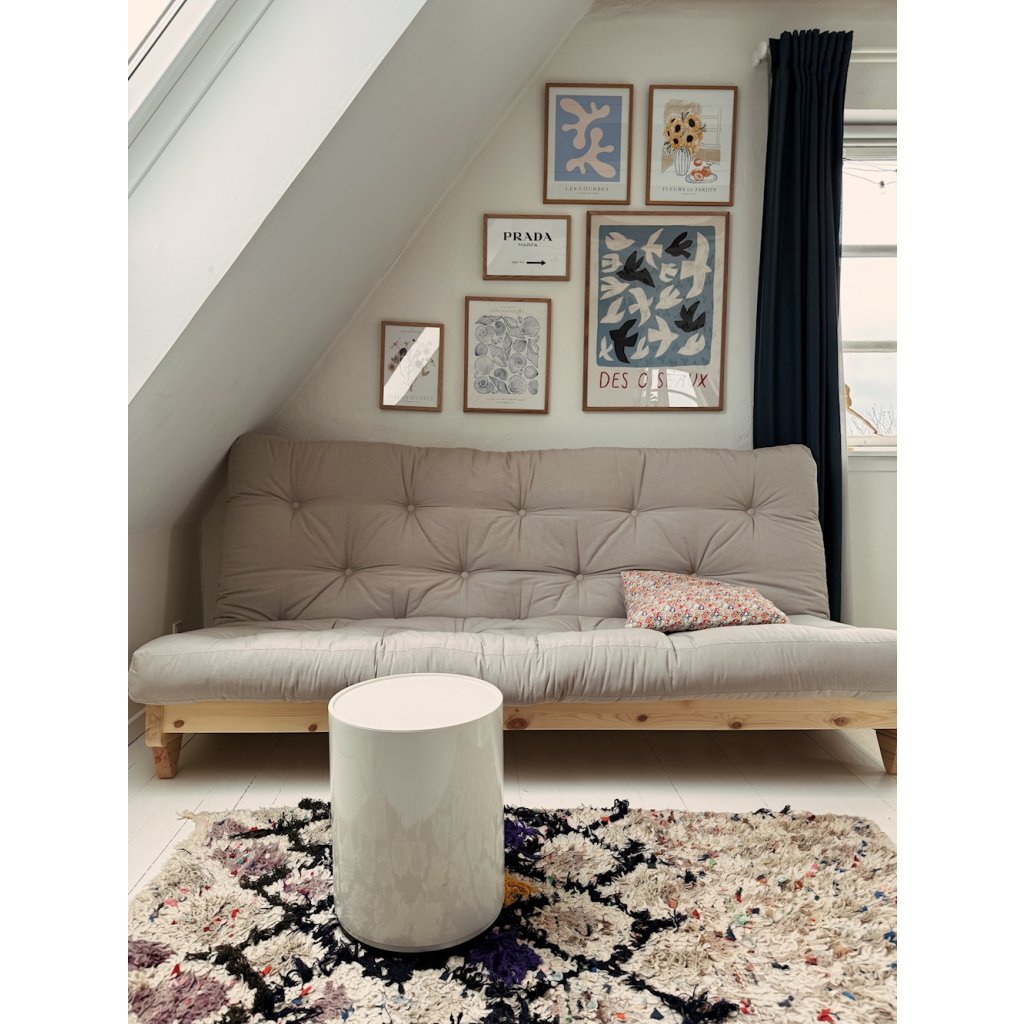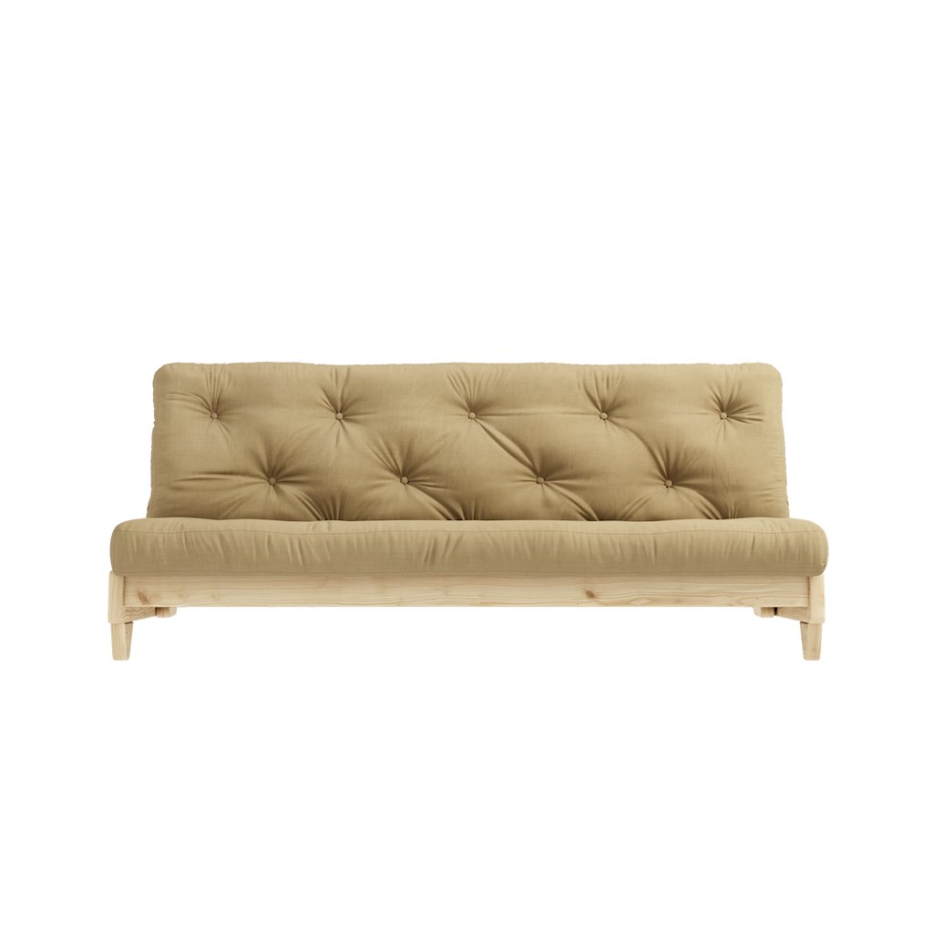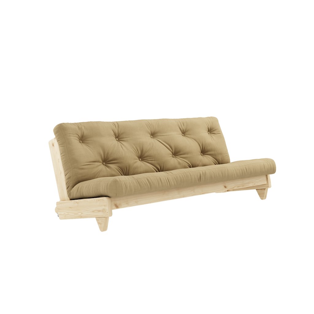 Třímístná rozkládací pohovka FRESH od výrobce nábytku a pohovek KARUP DESIGN. Pohovka je dodávána z vysoce kvalitního borovicového dřeva s certifikací FSC ve světlém provedení. Je vybavena futonovou matrací s pěnovou výplní, kterou pokrývá bavlněný a polyesterový povlak v pískové barvě. Moderní vzhled, krásné provedení a elegantní nohy společně dodávají pohovce FRESH vše, co od rozkládací pohovky očekáváte. Díky délce 200 cm je pohovka vhodná až pro 3 osoby. Při snadném rozložení získáte místo na spaní s rozměry až 140x200 cm, což zajistí dostatečný prostor pro přespání vaší návštěvy.