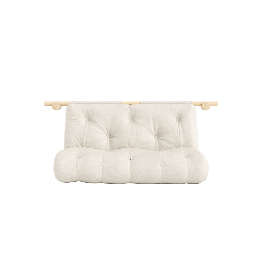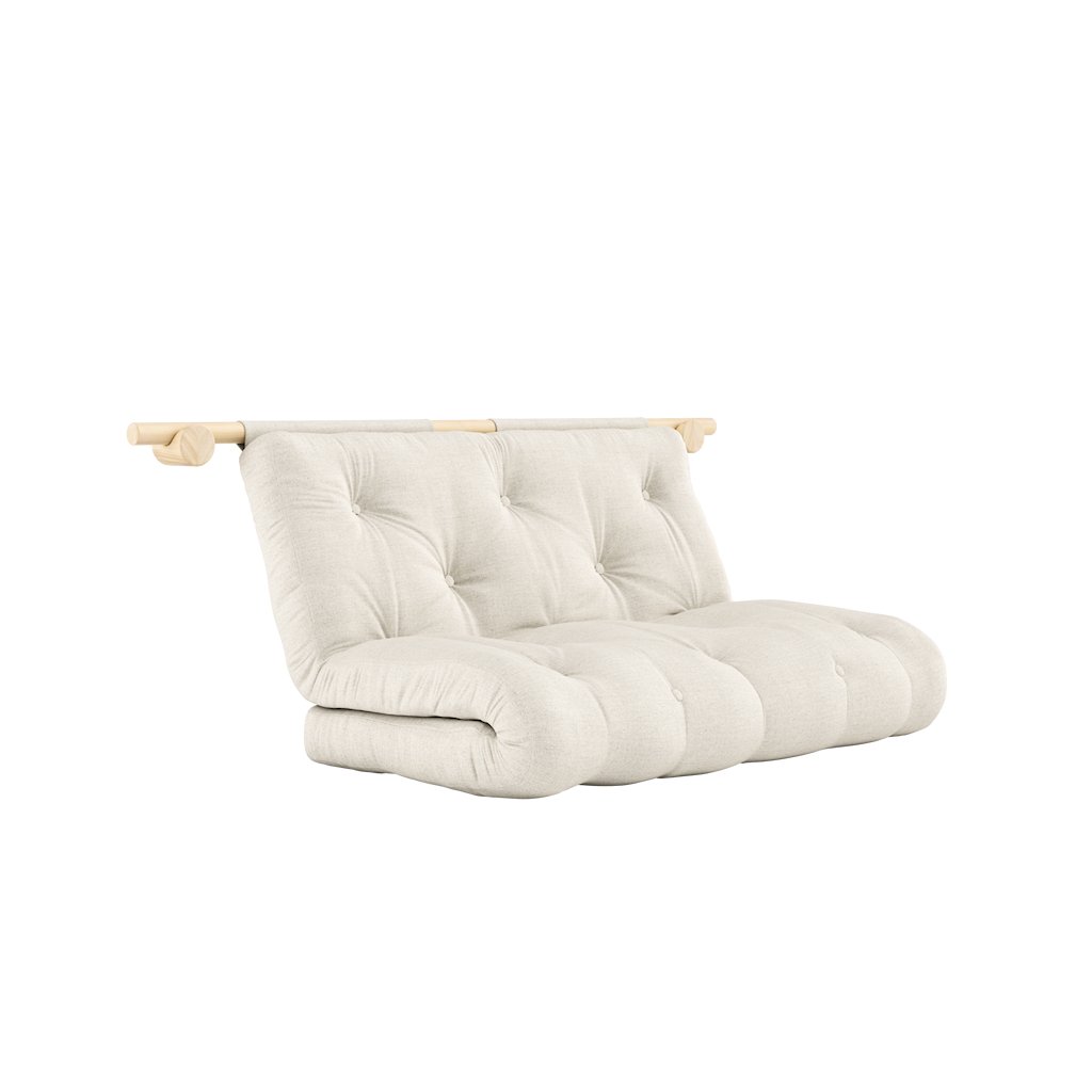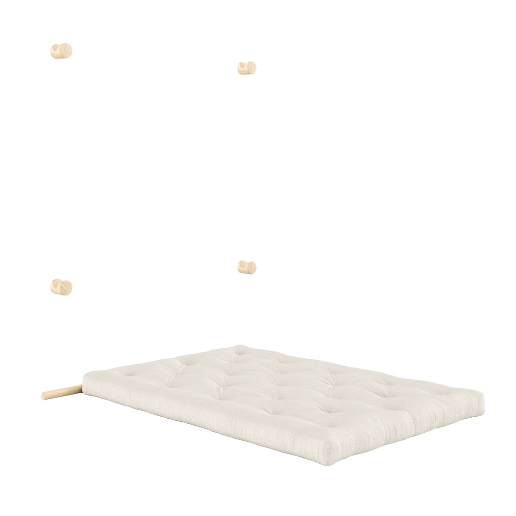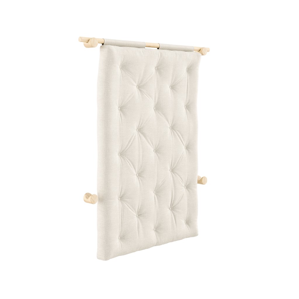 Stylová rozkládací pohovka HOOKED od výrobce nábytku a pohovek KARUP DESIGN. Pohovka představuje multifunkční kus nábytku. Je vybavená kvalitními držáky z borovicového dřeva s certifikací FSC ve světlém provedení, díky kterým lze snadno pověsit na zeď, když není používána a může sloužit jako dekorativní prvek ve vaší místnosti. Jednoduchým způsobem matraci rozložíte a dostanete lůžko s rozměry 210x135 cm.