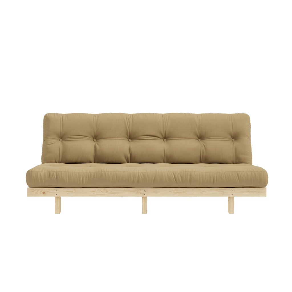 Třímístná rozkládací pohovka LEAN od výrobce nábytku a pohovek KARUP DESIGN. Pohovka je dodávána z vysoce kvalitního borovicového dřeva s certifikací FSC ve světlém provedení a výplní futonové matrace z pěny, kterou pokrývá bavlněný a polyesterový povlak v béžové barvě. Moderní vzhled, krásné provedení a elegantní nohy společně dodávají pohovce LEAN vše, co od rozkládací pohovky očekáváte. Délka 200 cm zajišťuje, že se na pohovku LEAN vejdou až 3 osoby. Jednoduchým způsobem pohovku rozložíte a získáte místo na spaní s rozměry až 200x130 cm, což zajistí dostatečný prostor pro přespání vaší návštěvy.