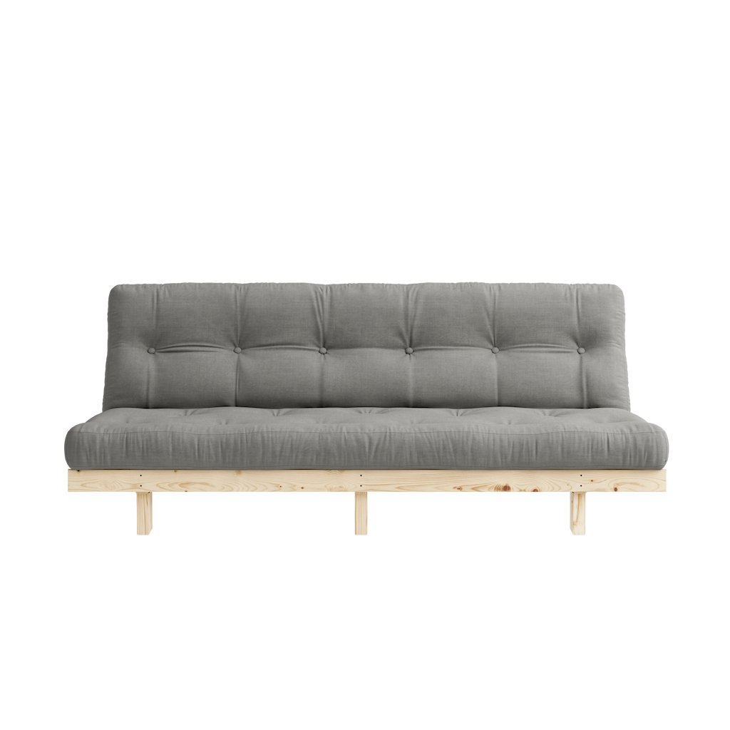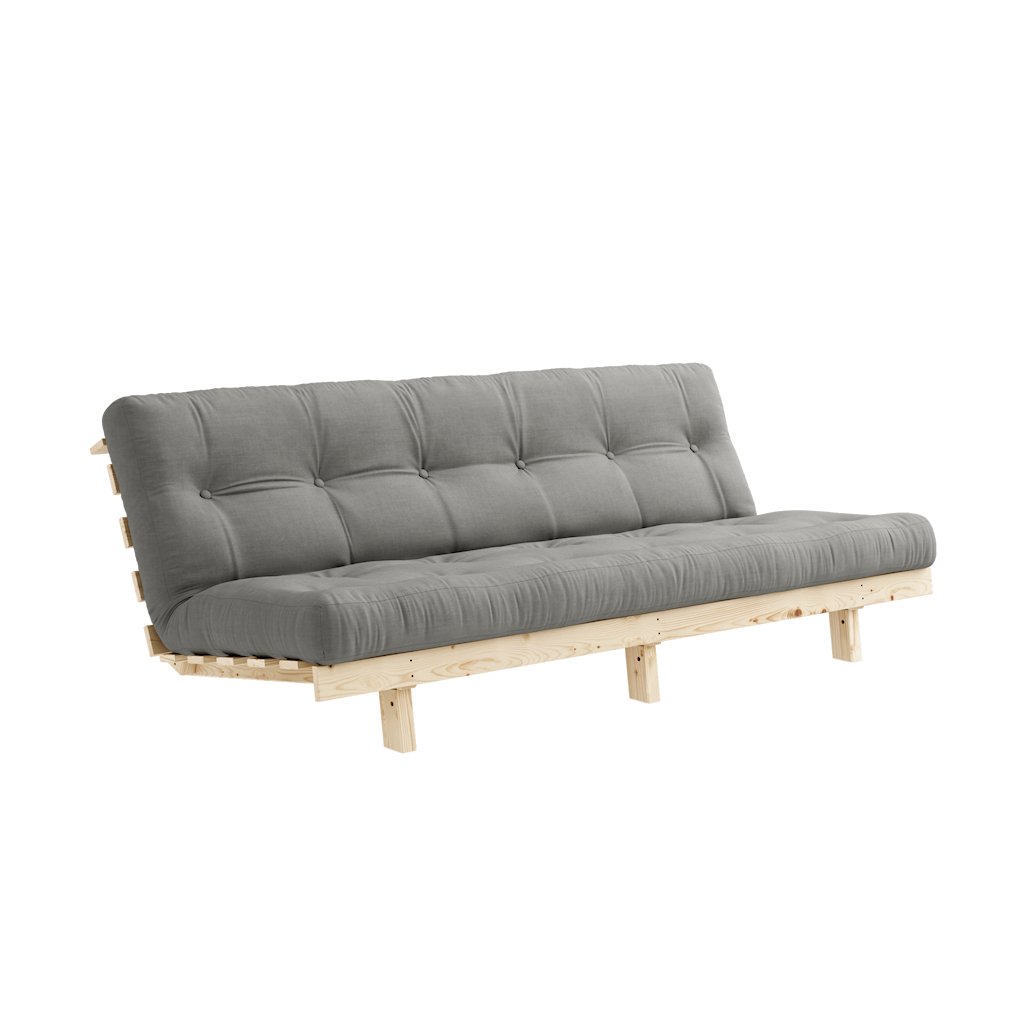 Třímístná rozkládací pohovka LEAN od výrobce nábytku a pohovek KARUP DESIGN. Pohovka je dodávána z vysoce kvalitního borovicového dřeva s certifikací FSC ve světlém provedení a výplní futonové matrace z pěny, kterou pokrývá bavlněný a polyesterový povlak v šedé barvě. Moderní vzhled, krásné provedení a elegantní nohy společně dodávají pohovce LEAN vše, co od rozkládací pohovky očekáváte. Délka 190 cm zajišťuje, že se na pohovku LEAN vejdou až 3 osoby. Jednoduchým způsobem pohovku rozložíte a získáte místo na spaní s rozměry až 190x130 cm, což zajistí dostatečný prostor pro přespání vaší návštěvy.