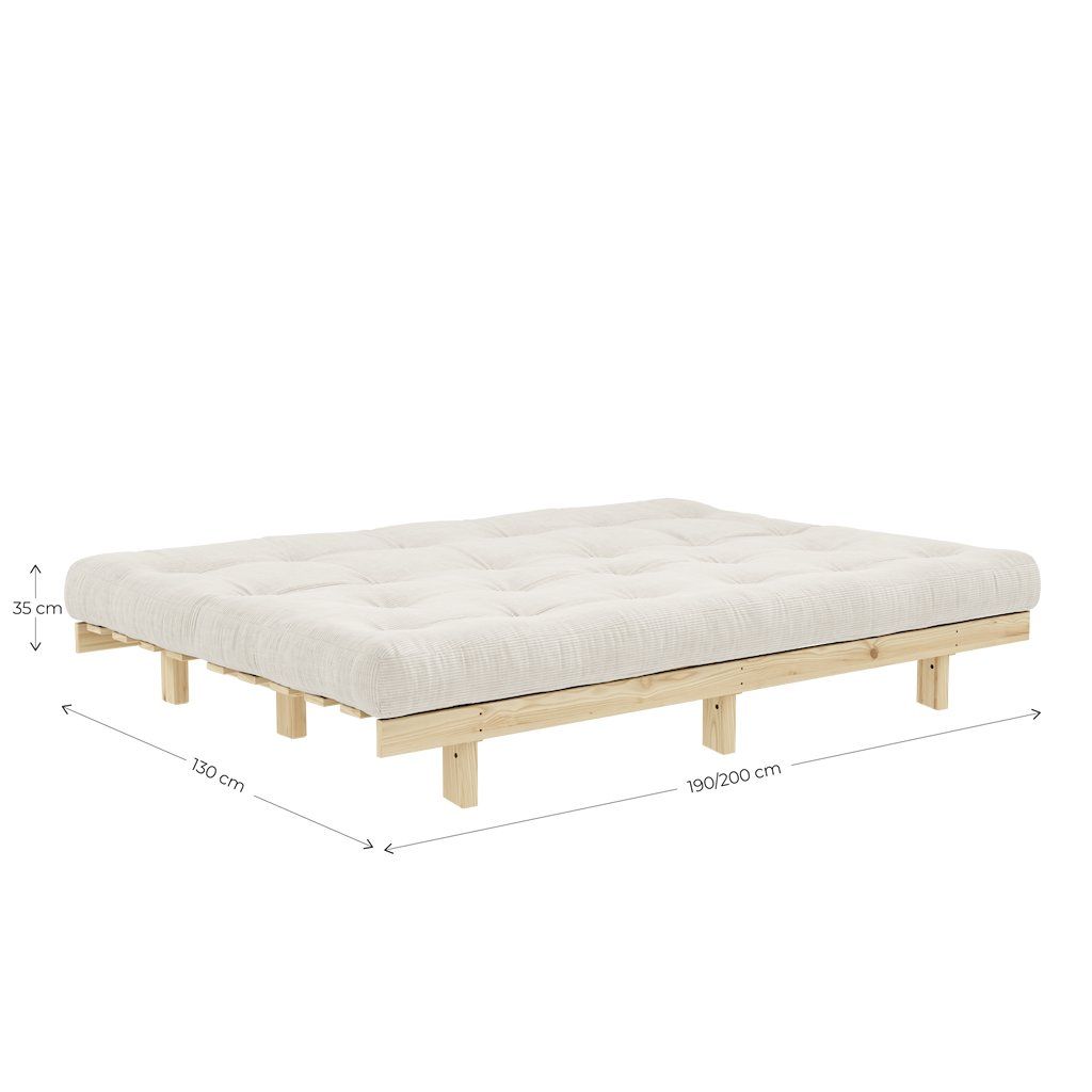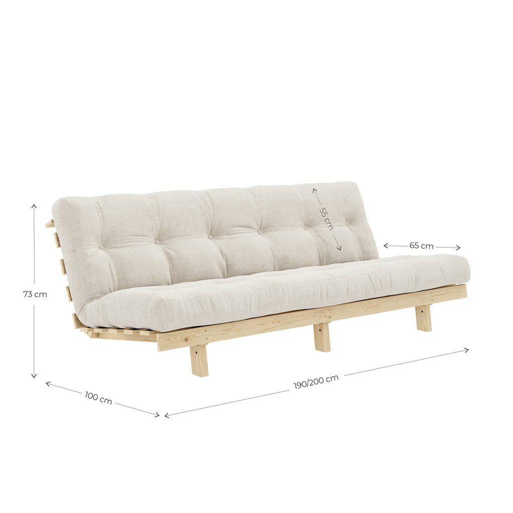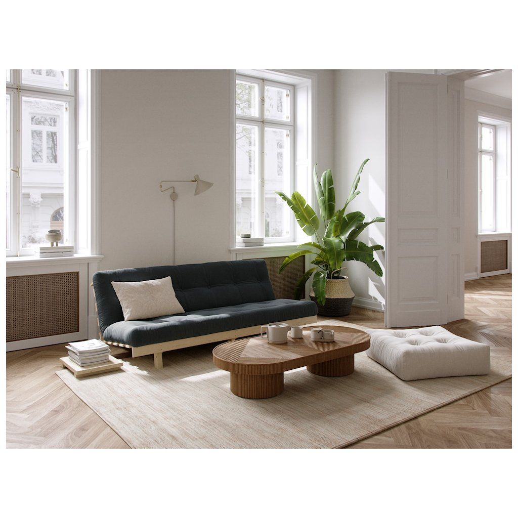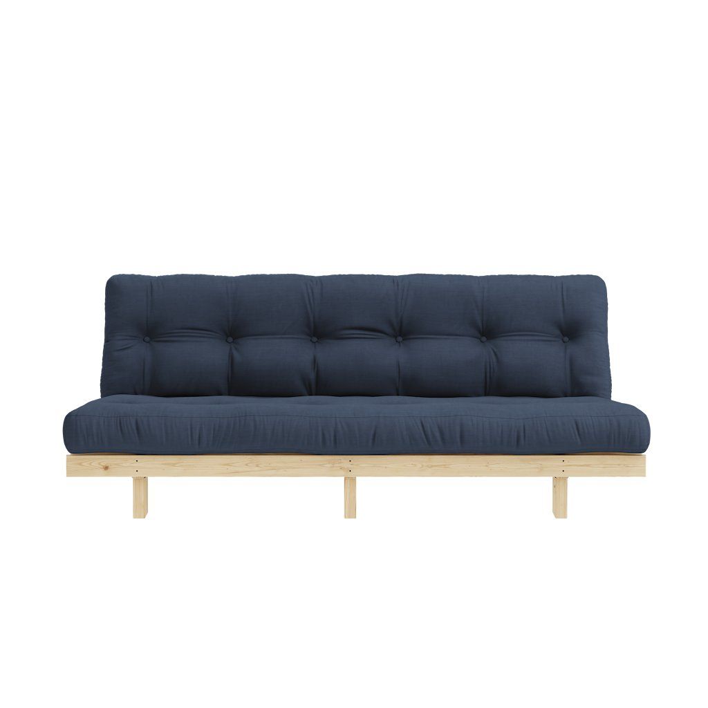 Třímístná rozkládací pohovka LEAN od výrobce nábytku a pohovek KARUP DESIGN. Pohovka je dodávána z vysoce kvalitního borovicového dřeva s certifikací FSC ve světlém provedení a výplní futonové matrace z pěny, kterou pokrývá bavlněný a polyesterový povlak v tmavě modré barvě. Moderní vzhled, krásné provedení a elegantní nohy společně dodávají pohovce LEAN vše, co od rozkládací pohovky očekáváte. Délka 200 cm zajišťuje, že se na pohovku LEAN vejdou až 3 osoby. Jednoduchým způsobem pohovku rozložíte a získáte místo na spaní s rozměry až 200x130 cm, což zajistí dostatečný prostor pro přespání vaší návštěvy.