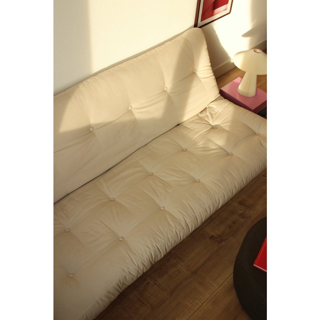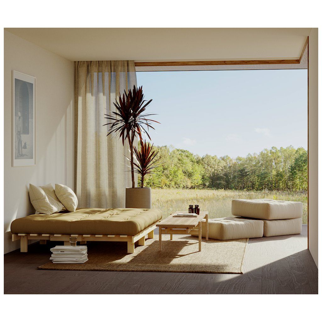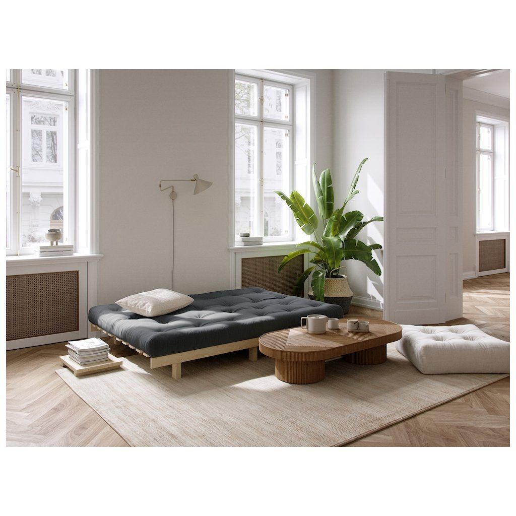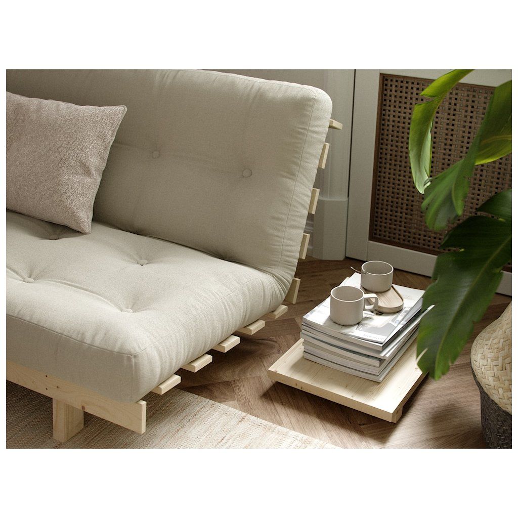 Třímístná rozkládací pohovka LEAN od výrobce nábytku a pohovek KARUP DESIGN. Pohovka je dodávána z vysoce kvalitního borovicového dřeva s certifikací FSC ve světlém provedení a výplní futonové matrace z pěny, kterou pokrývá bavlněný a polyesterový povlak v tmavě modré barvě. Moderní vzhled, krásné provedení a elegantní nohy společně dodávají pohovce LEAN vše, co od rozkládací pohovky očekáváte. Délka 200 cm zajišťuje, že se na pohovku LEAN vejdou až 3 osoby. Jednoduchým způsobem pohovku rozložíte a získáte místo na spaní s rozměry až 200x130 cm, což zajistí dostatečný prostor pro přespání vaší návštěvy.