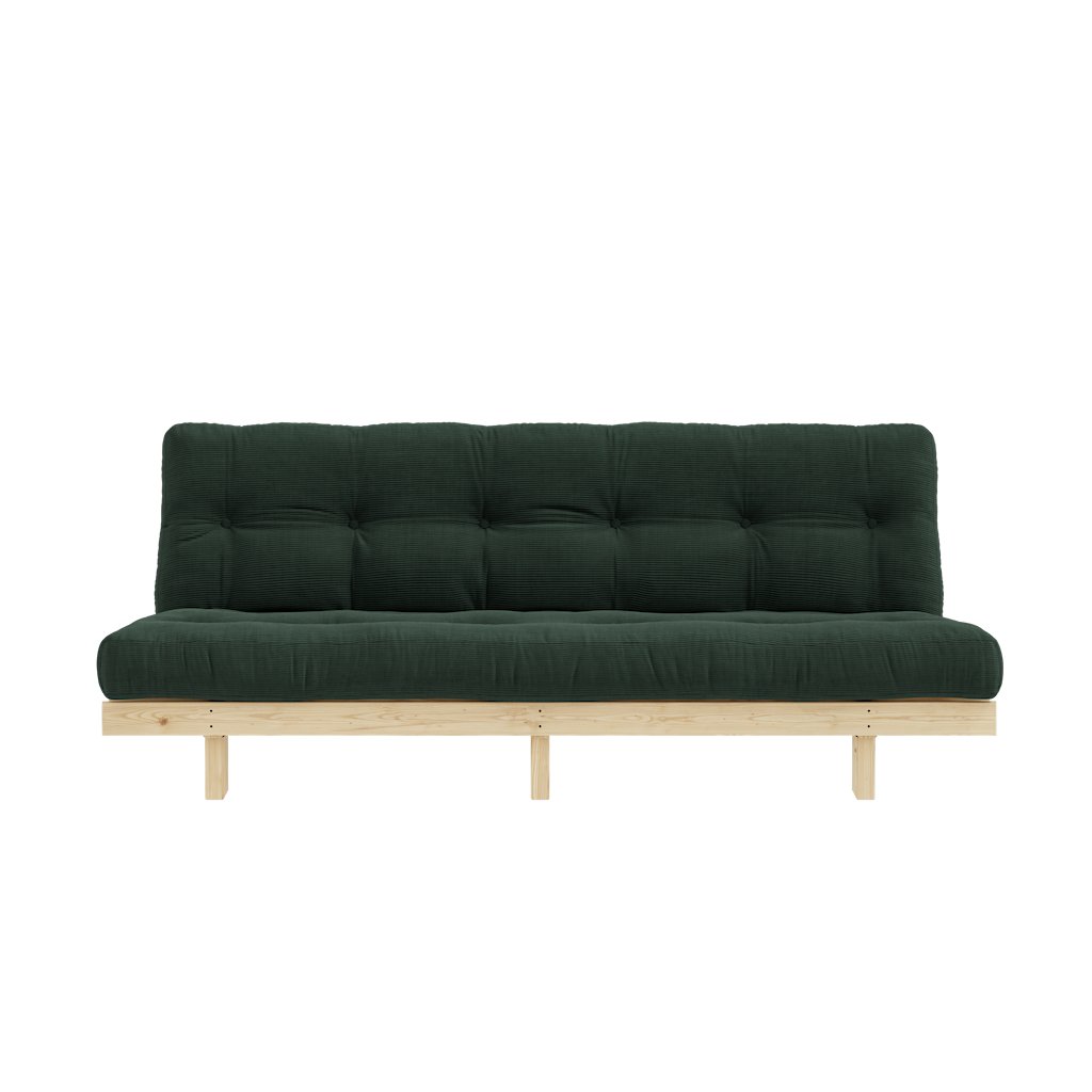 Třímístná rozkládací pohovka LEAN od výrobce nábytku a pohovek KARUP DESIGN. Pohovka je dodávána z vysoce kvalitního borovicového dřeva s certifikací FSC ve světlém provedení a výplní futonové matrace z pěny, kterou pokrývá bavlněný a polyesterový povlak v zelené barvě. Moderní vzhled, krásné provedení a elegantní nohy společně dodávají pohovce LEAN vše, co od rozkládací pohovky očekáváte. Délka 190 cm zajišťuje, že se na pohovku LEAN vejdou až 3 osoby. Jednoduchým způsobem pohovku rozložíte a získáte místo na spaní s rozměry až 190x130 cm, což zajistí dostatečný prostor pro přespání vaší návštěvy.