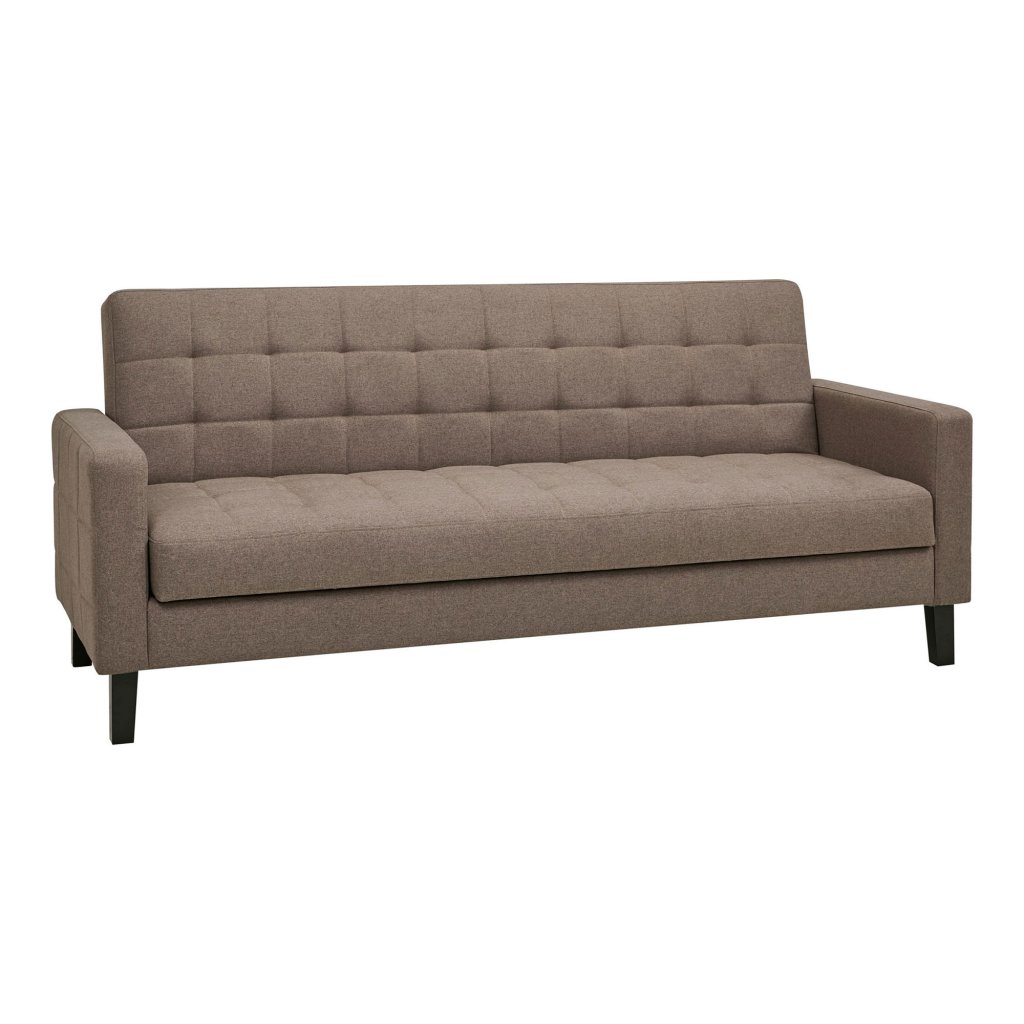 Designová rozkládací pohovka s úložným prostorem MILTON od dánské značky nádherného skandinávského nábytku HOUSE NORDIC. MILTON je ideální volbou pro ty, kteří hledají kombinaci pohodlí, praktičnosti a elegantního vzhledu. Čalouněná v hnědé polyesterové látce, působí teple a útulně, zatímco černé dřevěné nohy dodávají pohovce stabilitu i moderní kontrast. Pohovka disponuje praktickým úložným prostorem a lze ji snadno rozložit na pohodlné lůžko. Je díky tomu perfektní pro nečekané návštěvy nebo každodenní odpočinek.