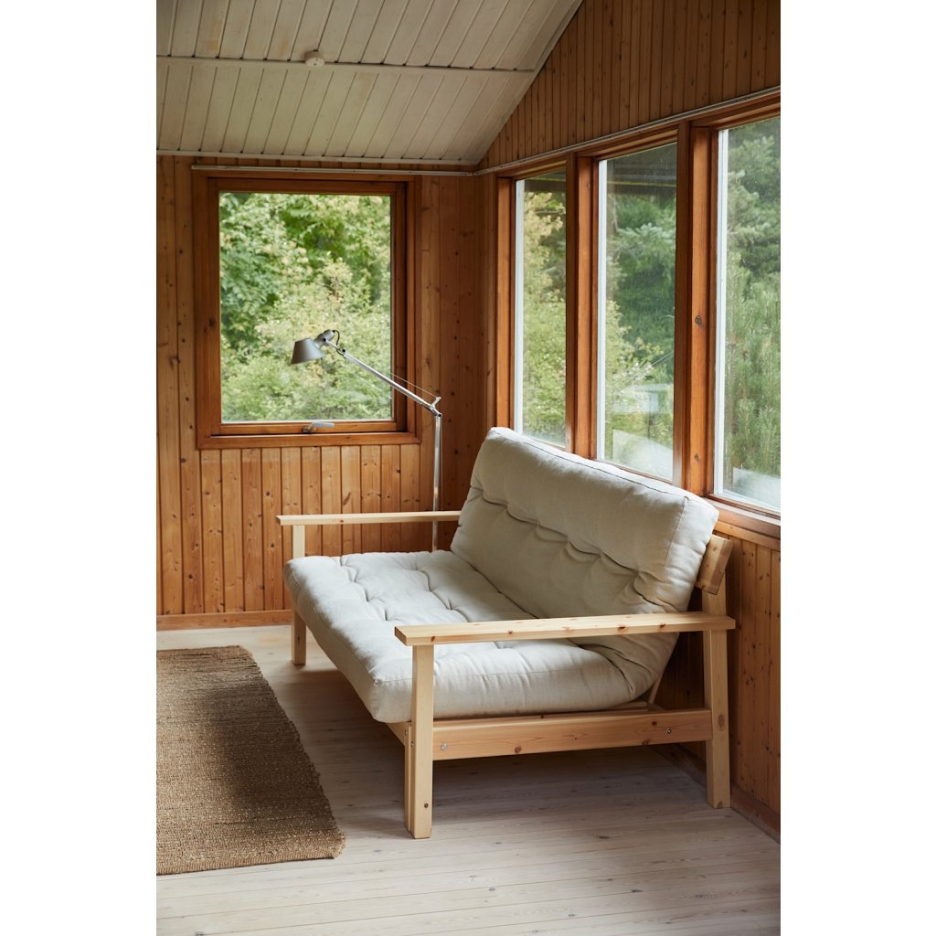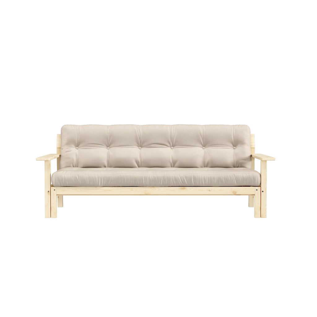 Třímístná rozkládací pohovka UNWIND od výrobce nábytku a pohovek KARUP DESIGN. Pohovka je dodávána z vysoce kvalitního borovicového dřeva s certifikací FSC ve světlém provedení. Je osazena futonovou matrací s pěnovou výplní, která zajišťuje pohodlné sezení i spaní. Moderní vzhled, krásné provedení a elegantní nohy společně dodávají pohovce UNWIND vše, co od rozkládací pohovky očekáváte. Délka 218 cm zajišťuje, že se na pohovku UNWIND vejdou až 3 osoby. Při snadném rozložení získáte místo na spaní s rozměry až 218x145 cm, což zajistí dostatečný prostor pro přespání vaší návštěvy. Výhodou pohovky UNWIND jsou široké opěrky, které mohou sloužit pro odložení nezbytných věcí.