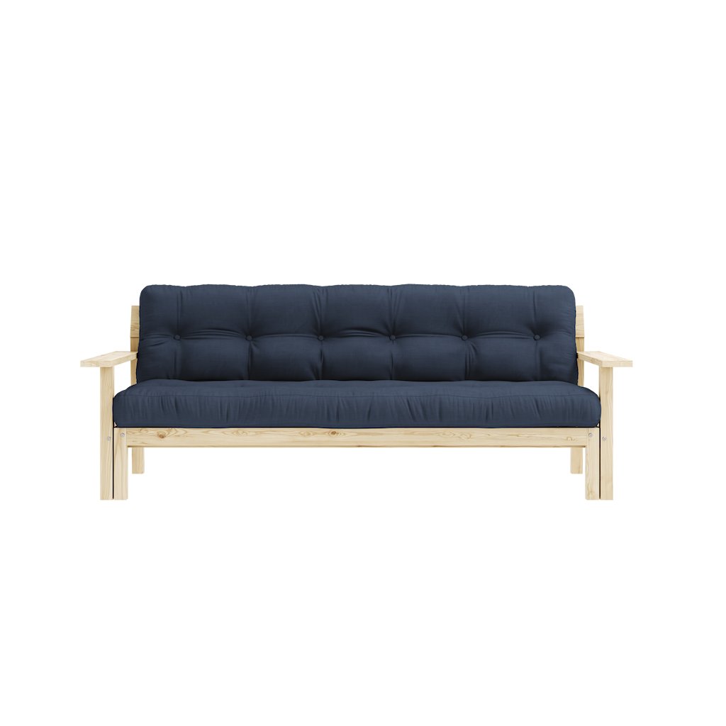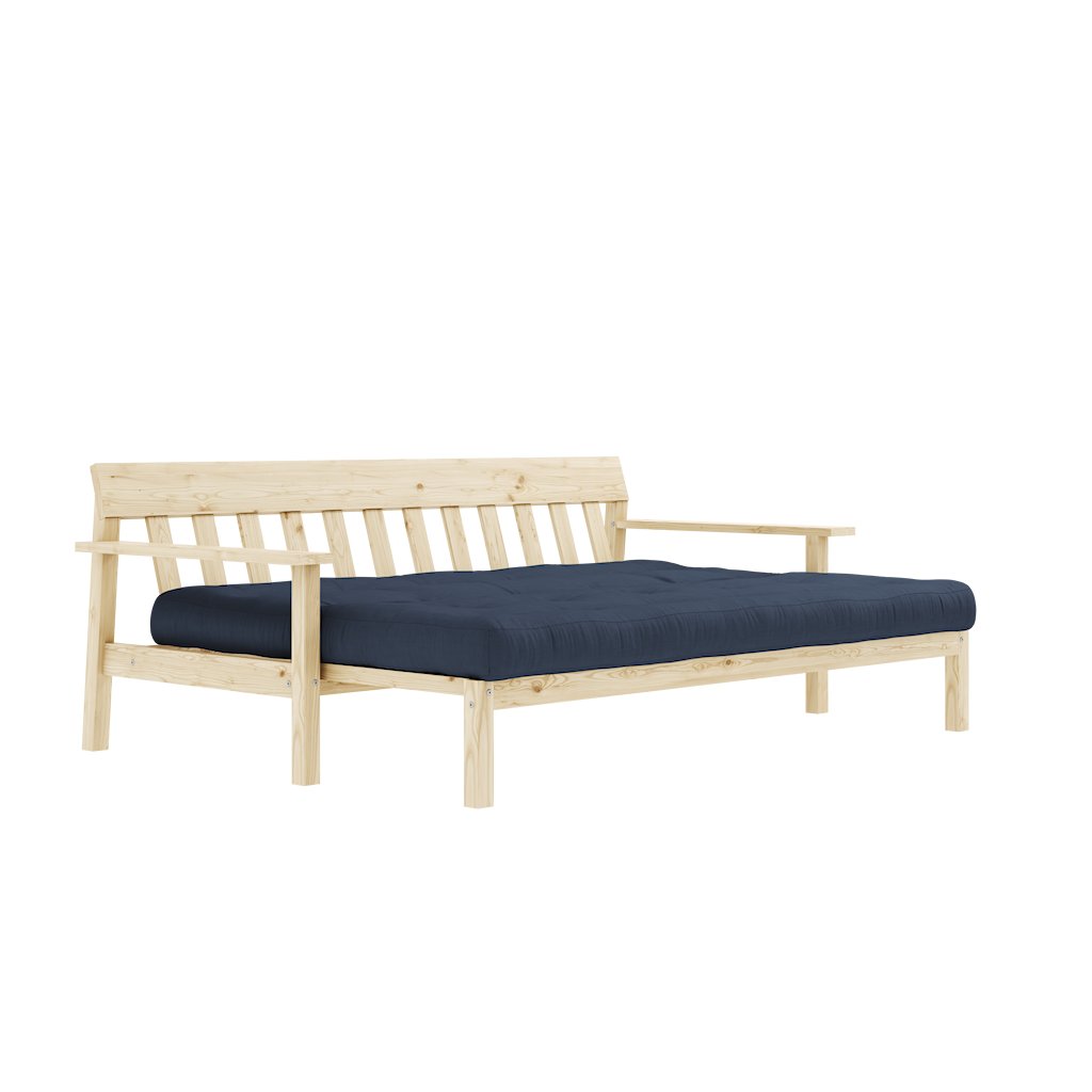 Třímístná rozkládací pohovka UNWIND od výrobce nábytku a pohovek KARUP DESIGN. Pohovka je dodávána z vysoce kvalitního borovicového dřeva s certifikací FSC ve světlém provedení. Je osazena futonovou matrací s pěnovou výplní, která zajišťuje pohodlné sezení i spaní. Moderní vzhled, krásné provedení a elegantní nohy společně dodávají pohovce UNWIND vše, co od rozkládací pohovky očekáváte. Délka 218 cm zajišťuje, že se na pohovku UNWIND vejdou až 3 osoby. Při snadném rozložení získáte místo na spaní s rozměry až 218x145 cm, což zajistí dostatečný prostor pro přespání vaší návštěvy. Výhodou pohovky UNWIND jsou široké opěrky, které mohou sloužit pro odložení nezbytných věcí.