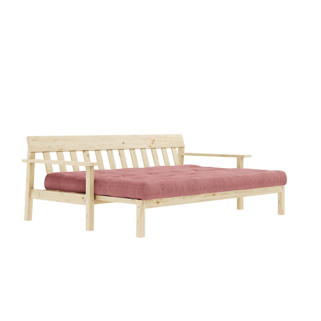 Třímístná rozkládací pohovka UNWIND od výrobce nábytku a pohovek KARUP DESIGN. Pohovka je dodávána z vysoce kvalitního borovicového dřeva s certifikací FSC ve světlém provedení. Je osazena futonovou matrací s pěnovou výplní, která zajišťuje pohodlné sezení i spaní. Moderní vzhled, krásné provedení a elegantní nohy společně dodávají pohovce UNWIND vše, co od rozkládací pohovky očekáváte. Délka 218 cm zajišťuje, že se na pohovku UNWIND vejdou až 3 osoby. Při snadném rozložení získáte místo na spaní s rozměry až 218x145 cm, což zajistí dostatečný prostor pro přespání vaší návštěvy. Výhodou pohovky UNWIND jsou široké opěrky, které mohou sloužit pro odložení nezbytných věcí.