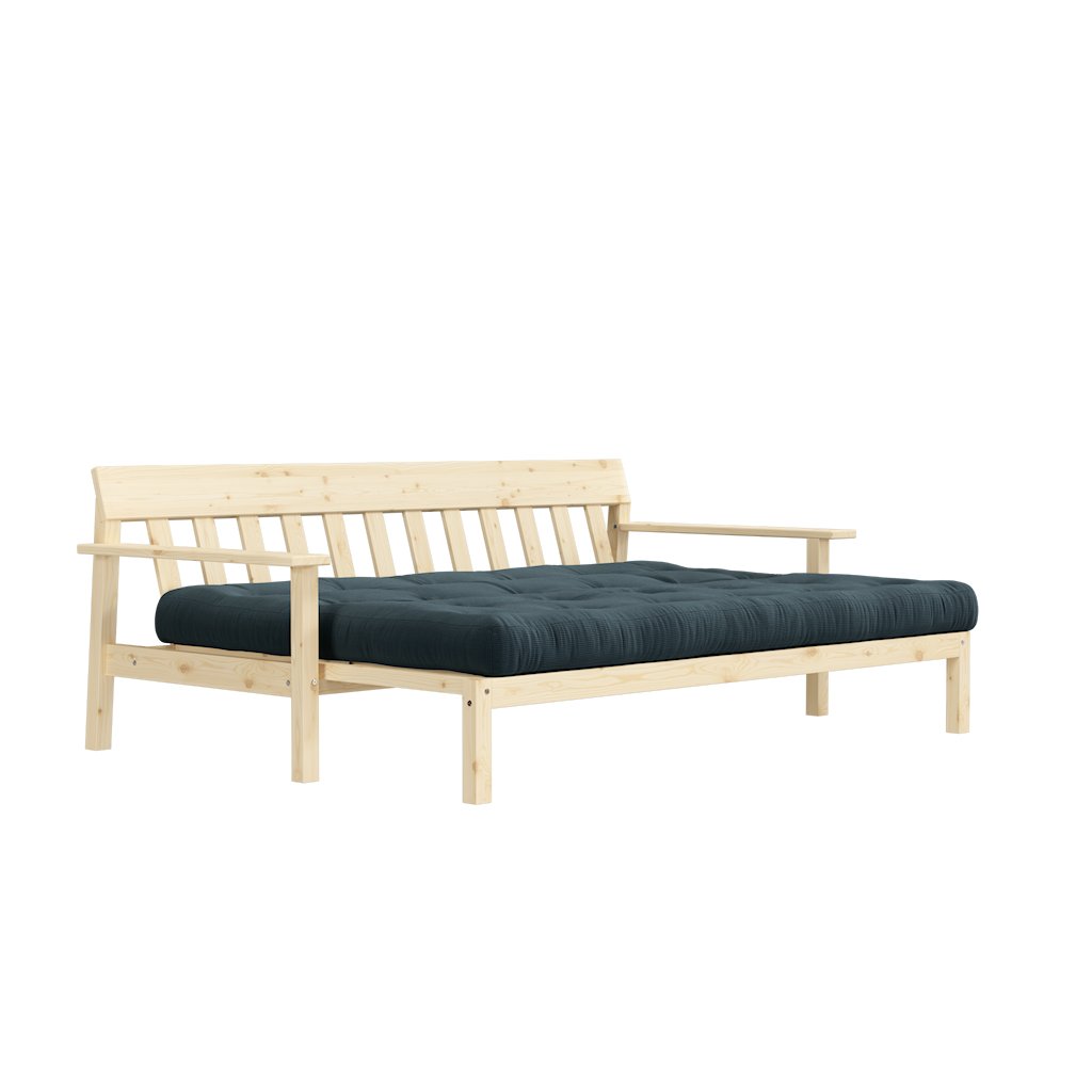 Třímístná rozkládací pohovka UNWIND od výrobce nábytku a pohovek KARUP DESIGN. Pohovka je dodávána z vysoce kvalitního borovicového dřeva s certifikací FSC ve světlém provedení. Je osazena futonovou matrací s pěnovou výplní, která zajišťuje pohodlné sezení i spaní. Moderní vzhled, krásné provedení a elegantní nohy společně dodávají pohovce UNWIND vše, co od rozkládací pohovky očekáváte. Délka 218 cm zajišťuje, že se na pohovku UNWIND vejdou až 3 osoby. Při snadném rozložení získáte místo na spaní s rozměry až 218x145 cm, což zajistí dostatečný prostor pro přespání vaší návštěvy. Výhodou pohovky UNWIND jsou široké opěrky, které mohou sloužit pro odložení nezbytných věcí.
