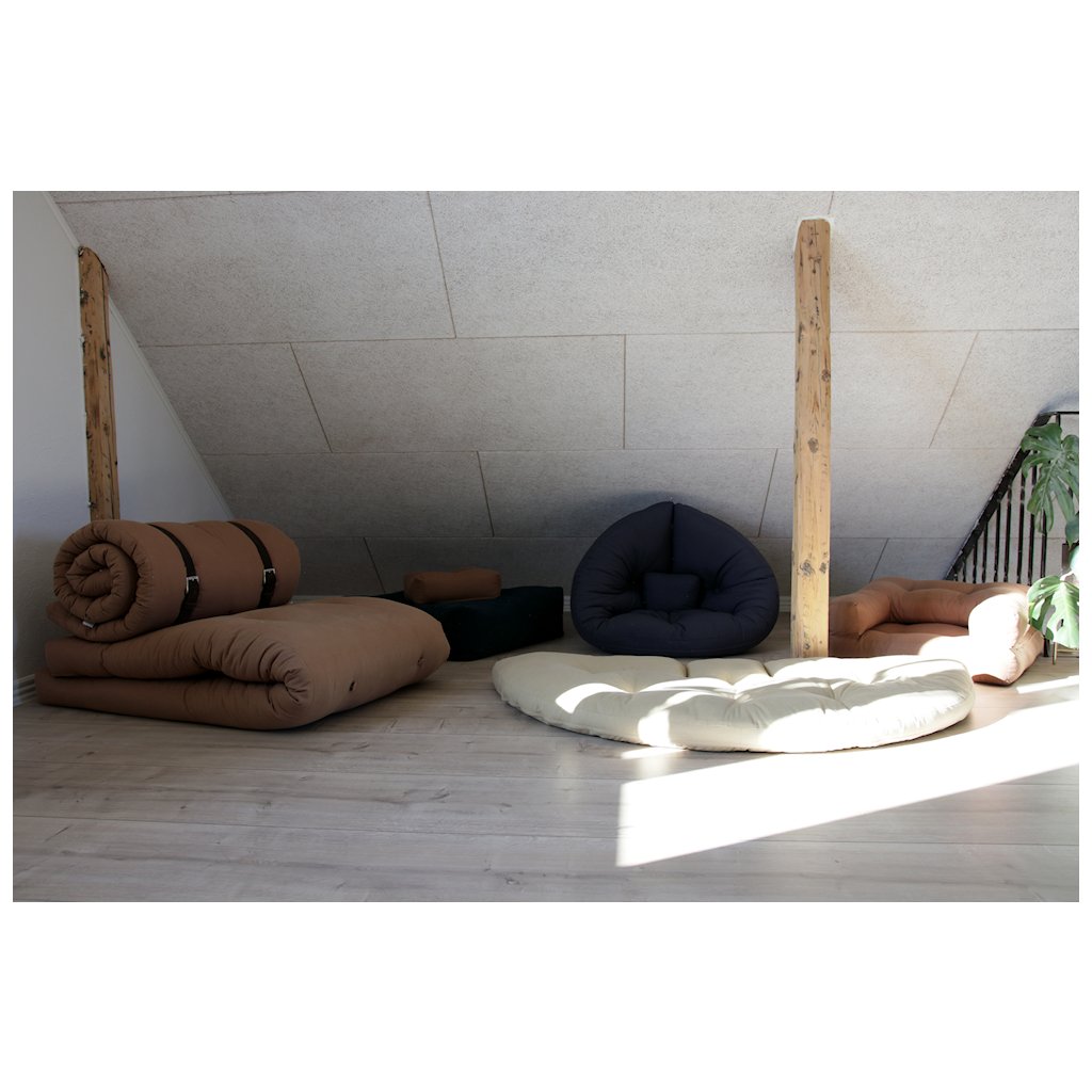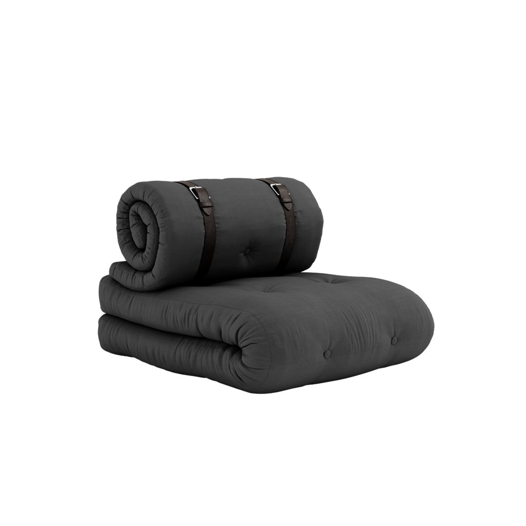 Rozkládací zahradní křeslo BUCKLE UP OUT od dánského výrobce stylového nábytku KARUP DESIGN. Křeslo představuje multifunkční kus nábytku, který můžete využít buď jako křeslo s délkou 70 cm, nebo jako postel s rozměry 70x200 cm. Futonová matrace s pěnovou výplní zajištuje pohodlné spaní i sezení. Vrchní matrace má tloušťku 5 cm s 2 cm pěnovým jádrem, sedací matrace 12 cm se 4 cm pěnovým jádrem. Matrace jsou spojeny elegantními koženými páskami. Každý kus je potažen prémiovou látkou, která odpuzuje vodu, je odolná vůči skvrnám a vyniká vysokou stálostí barev na světle. Díky svému modernímu, městskému vzhledu je kolekce OUT vhodná nejen do exteriéru, ale i do interiéru.