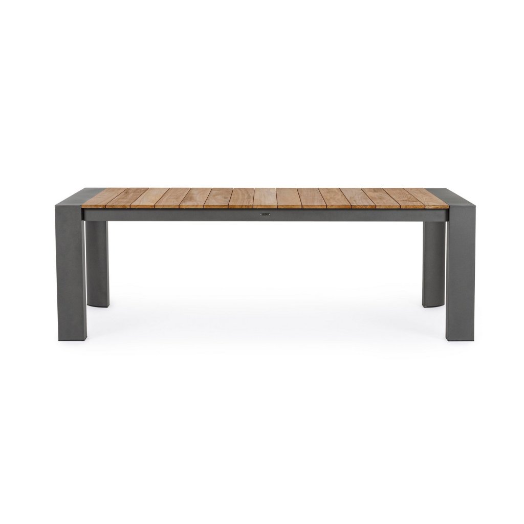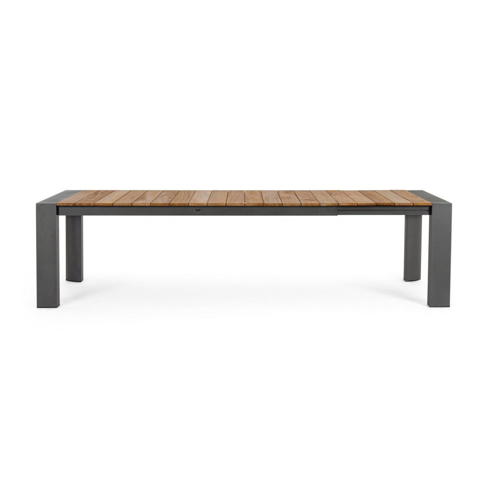 Stylový rozkládací zahradní stůl CAMERON od italského výrobce stylového nábytku BIZZOTTO v antracitovém odstínu lakovaného hliníku a teakového dřeva.