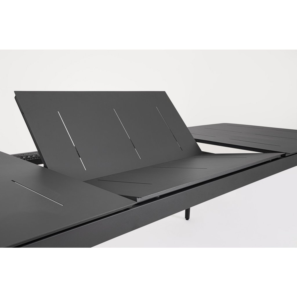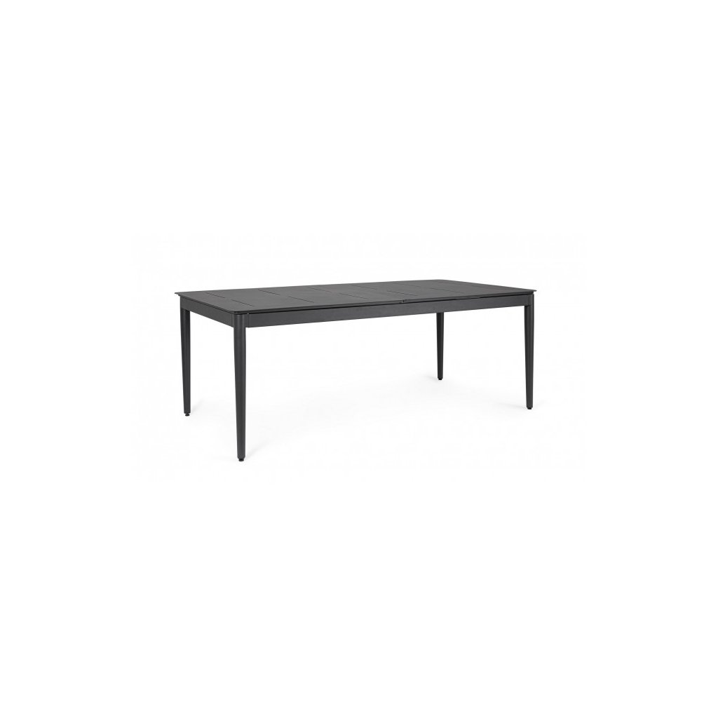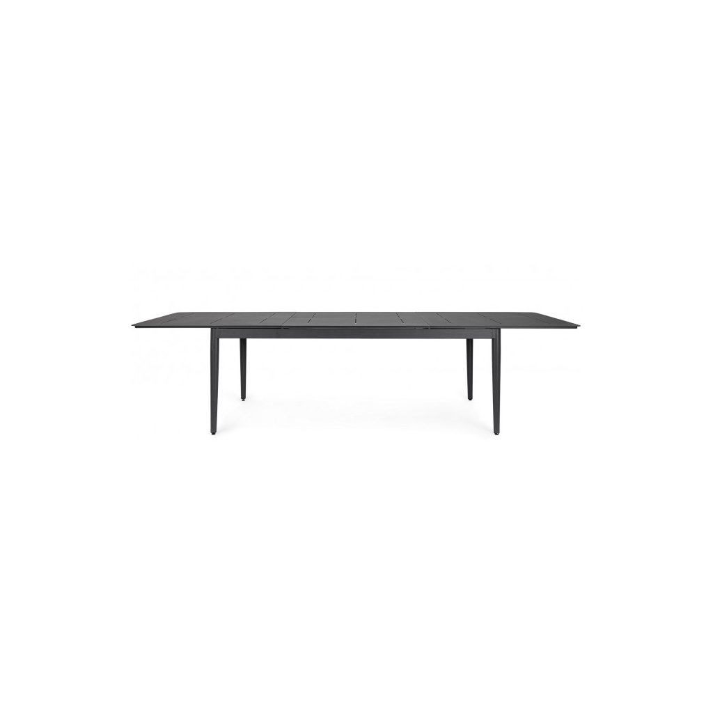 Nádherný rozkládací zahradní stůl NEBULA od italského výrobce stylového nábytku BIZZOTTO. Krásný a jednoduchý stůl je vyrobený z práškového hliníku v antracitovém provedení. Stůl vás zaujme i díky velmi minimalistickému provedení, díky kterému zapadne do jakéhokoli stylu. Skvěle ho využijete na rodinné sešlosti. Desku stolu lze rozšířit díky automatickému výsuvu s motýlkovým zavřením.