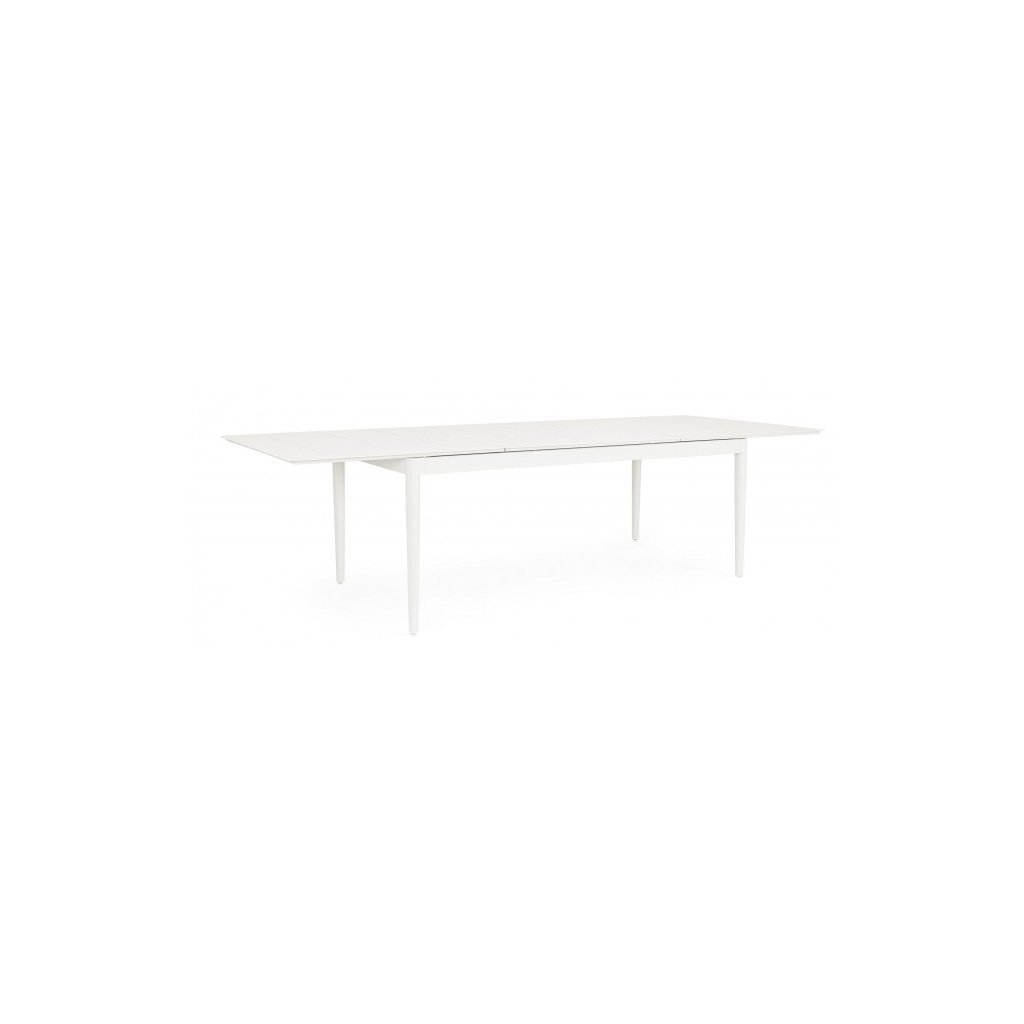 Nádherný rozkládací zahradní stůl NEBULA od italského výrobce stylového nábytku BIZZOTTO. Krásný a jednoduchý stůl je vyrobený z práškového hliníku v bílé barvě. Stůl vás zaujme i díky velmi minimalistickému provedení, díky kterému zapadne do jakéhokoli stylu. Skvěle ho využijete na rodinné sešlosti. Desku stolu lze rozšířit díky automatickému výsuvu s motýlkovým zavřením.