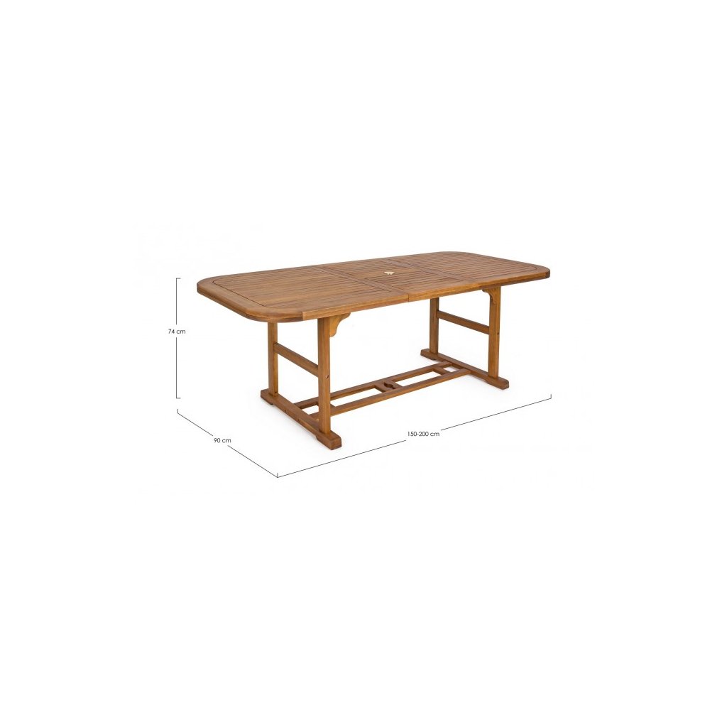Designový dřevěný rozkládací stůl NOEMI od italských kolegů z firmy BIZZOTTO. Stůl je kompletně vyroben z akáciového dřeva. Materiál je velmi odolným vůči nepřiznivým vlivům vnějšího počasí díky své olejové úpravě. Stůl je velmi praktický díky možnosti rozložení. Dvojitá deska stolu má zaoblené rohy. Je to zkrátka úžasný pomocník na vaši zahradu. Šrouby jsou kvalitně zpracované. Jejich povrch je galvanizován, aby nekorodovaly.