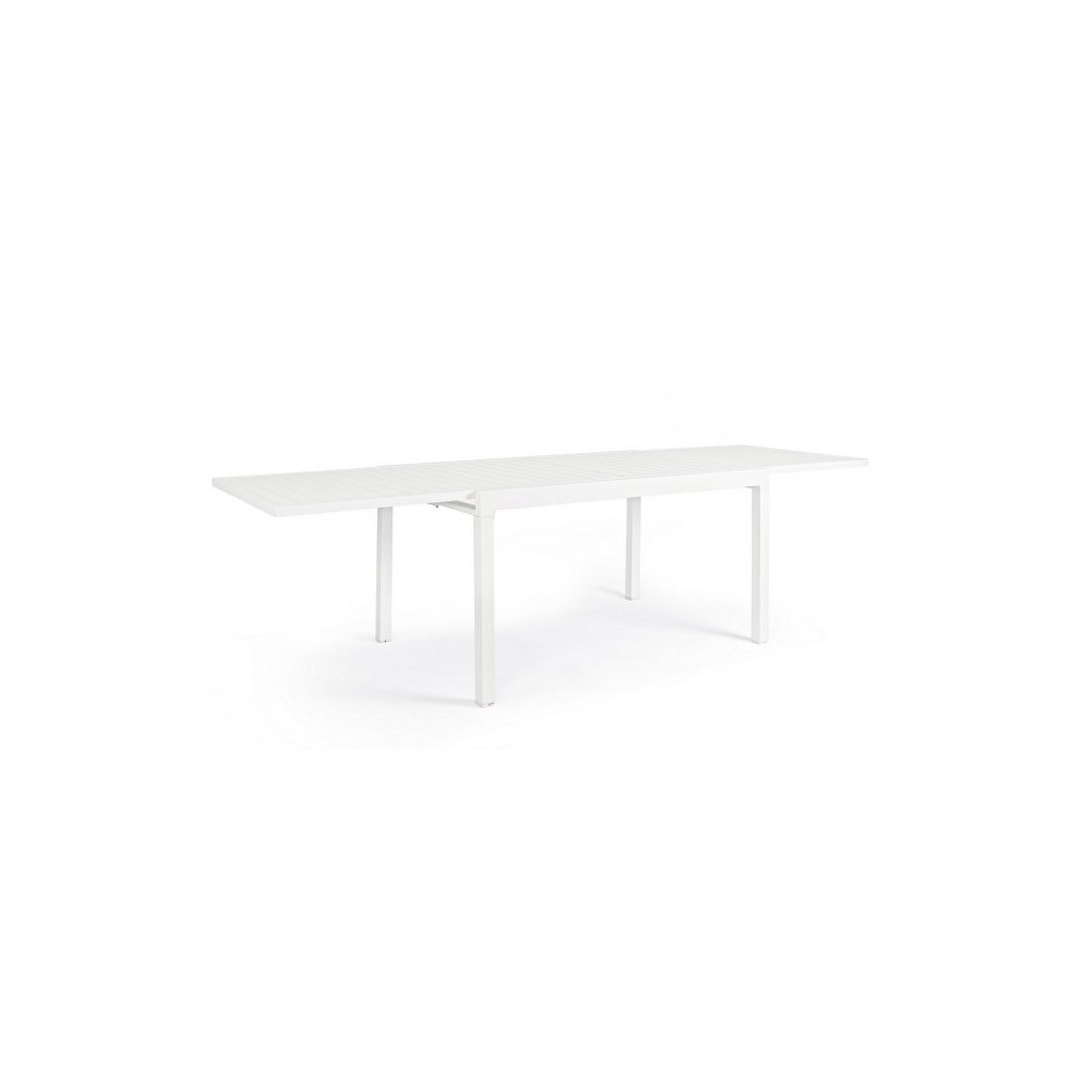 Designový rozkládací zahradní stůl PELAGIUS od italského výrobce stylového nábytku BIZZOTTO v provedení práškovaného hliníku v bílém odstínu.