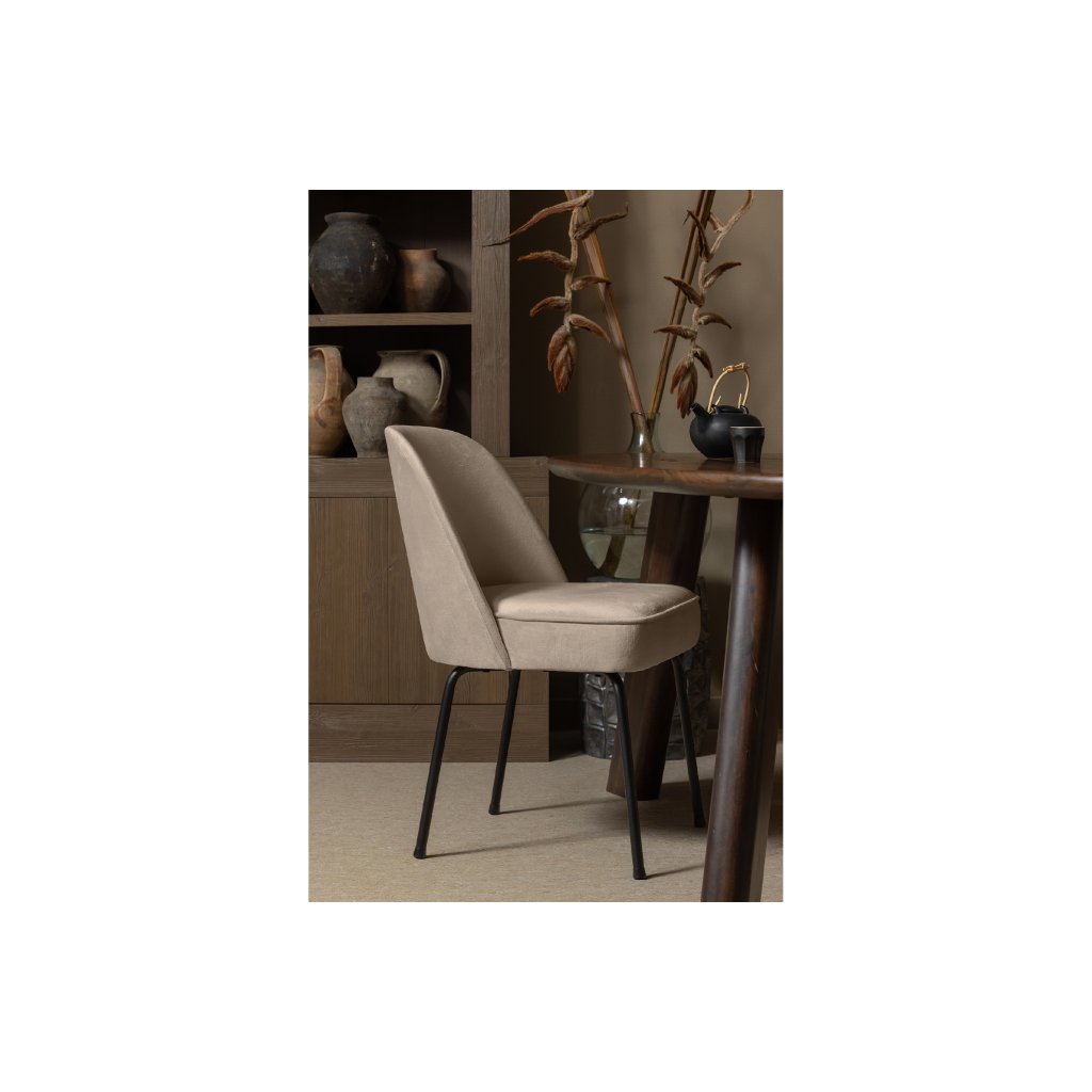 Jídelní židle VOGUE od holandského výrobce kvalitního nábytku BePureHome. Židle se skládá ze sedáku v khaki barvě a opěradla z hebké sametové látky s výplní a 4 černých kovových nohou s práškovanou úpravou, které jsou k sedáku ze spodu připevněny. Tvoří tak elegantní celek, který vám zajistí maximální pohodlí, stabilitu a nosnost.