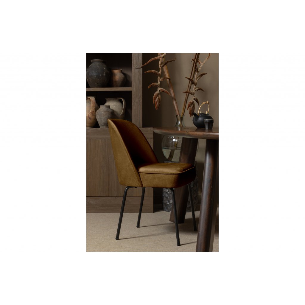 Jídelní židle VOGUE od holandského výrobce kvalitního nábytku BePureHome. Židle se skládá z medově žlutého sedáku a opěradla z hebké sametové látky s výplní a 4 černých kovových nohou s práškovanou úpravou, které jsou k sedáku ze spodu připevněny. Tvoří tak elegantní celek, který vám zajistí maximální pohodlí, stabilitu a nosnost.