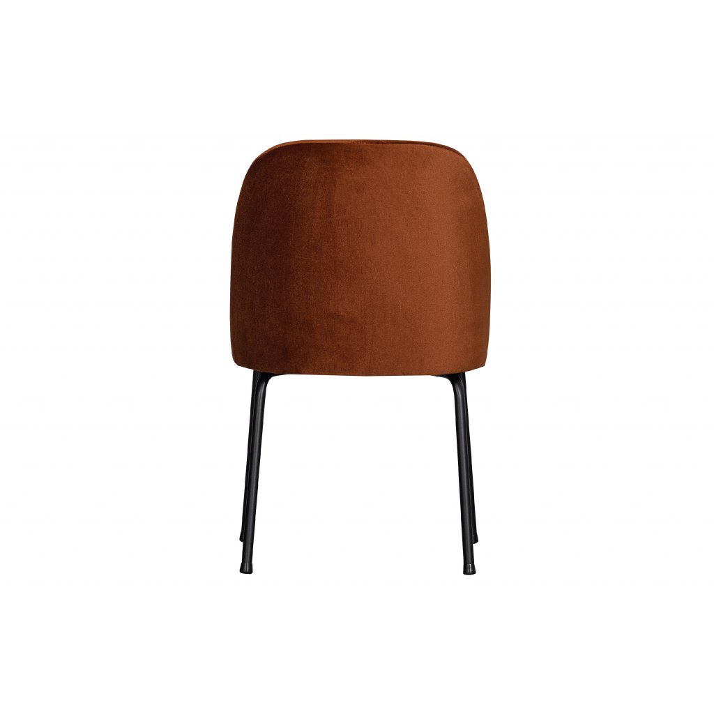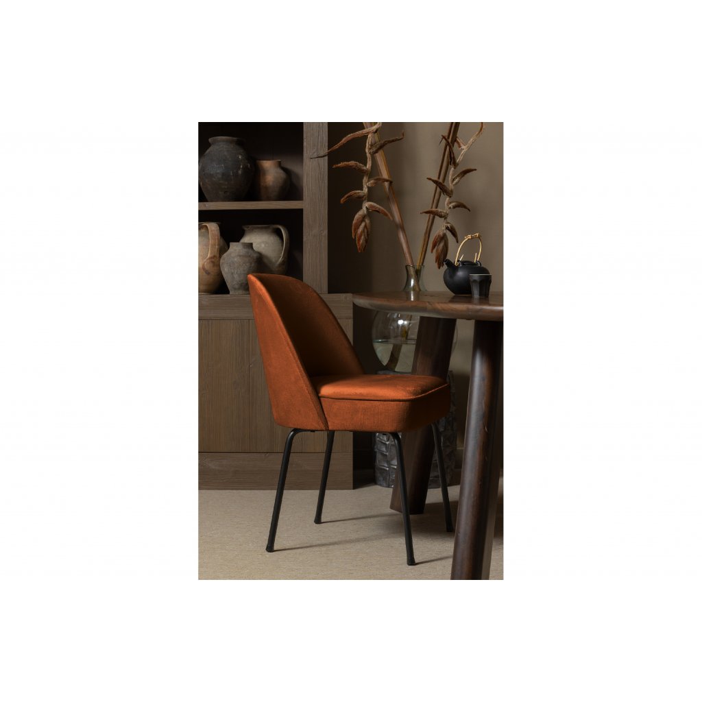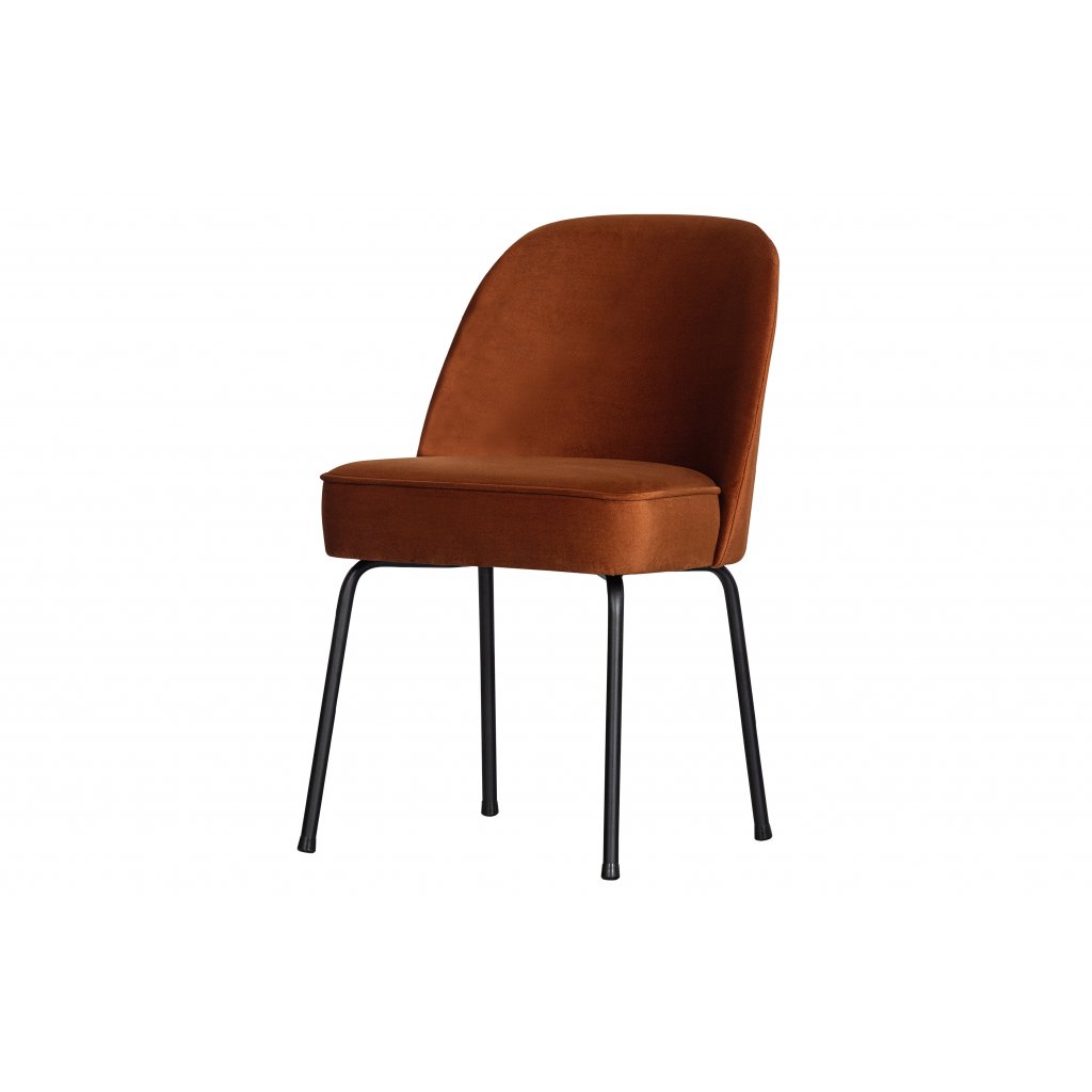 Jídelní židle VOGUE od holandského výrobce kvalitního nábytku BePureHome. Židle se skládá z oranžového sedáku a opěradla z hebké sametové látky s výplní a 4 černých kovových nohou s práškovanou úpravou, které jsou k sedáku ze spodu připevněny. Tvoří tak elegantní celek, který vám zajistí maximální pohodlí, stabilitu a nosnost.