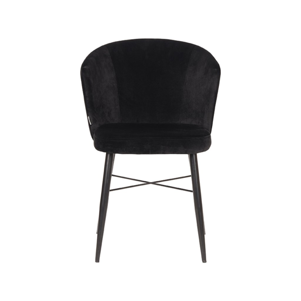 Jídelní židle WAVE od holandského výrobce industriálního nábytku LABEL51. Sametová židle WAVE je dodávána s potahem v černé barvě. Židli tvoří sedák ve tvaru čtverce spojený s opěradlem ve zvlněném designu. Celek tak vytváří příjemnou sedací plochu. Nohy jsou z kovu a lakované černou barvou, které zajišťují maximální stabilitu a nosnost. Okouzlující a nekomplikovaná jídelní židle plná možností.